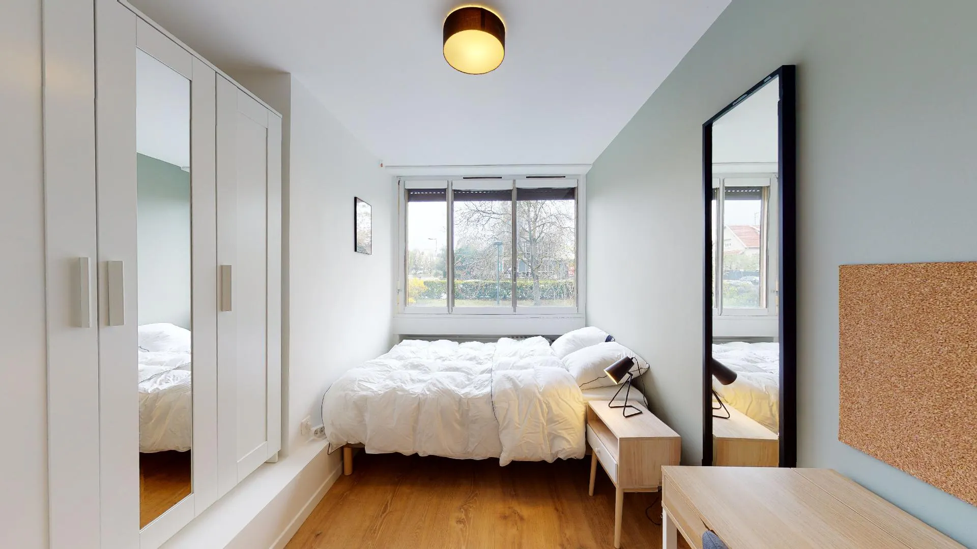 Découvrez une opportunité unique de vivre dans un cadre contemporain et convivial au sein de la résidence Découvrez Fontenay Martinie. Récemment rénové, cet appartement chaleureux de 103 m2 offre un environnement moderne idéal pour accueillir 5 locataires dynamiques. Situé à proximité immédiate des commerces, des restaurants et facilement accessible via le RER A – Val De Fontenay, cet espace est parfait pour ceux qui recherchent confort, praticité et convivialité. La résidence propose une cuisine équipée, un salon spacieux, une salle à manger et un balcon, créant un cadre de vie agréable et convivial. Chaque chambre privée a été pensée pour offrir un espace personnel optimisé : un lit double haut de gamme de 140x200 cm, un bureau pour travailler ou étudier, ainsi que de nombreux rangements (armoire, tiroirs, étagère, table de nuit). La chambre dispose également d’un radiateur pour assurer votre confort tout au long de l’année, et d’une luminosité agréable grâce à de nombreuses fenêtres. Vous partagerez une salle de bain moderne avec douche, lavabo et toilettes, accessible uniquement avec une ou deux autres colocataires, assurant une atmosphère intime et chaleureuse. La résidence met également à votre disposition une cuisine commune, une salle de séjour, un espace laverie, et d’autres commodités pour faciliter votre quotidien. Idéal pour étudiants ou jeunes professionnels, cette chambre offre un cadre de vie pratique, accueillant et plein de vie, dans un quartier animé à deux pas des commodités et des transports. N’attendez plus : réservez en ligne votre chambre dès aujourd’hui et rejoignez cette communauté dynamique et chaleureuse au cœur de Fontenay Martinie...