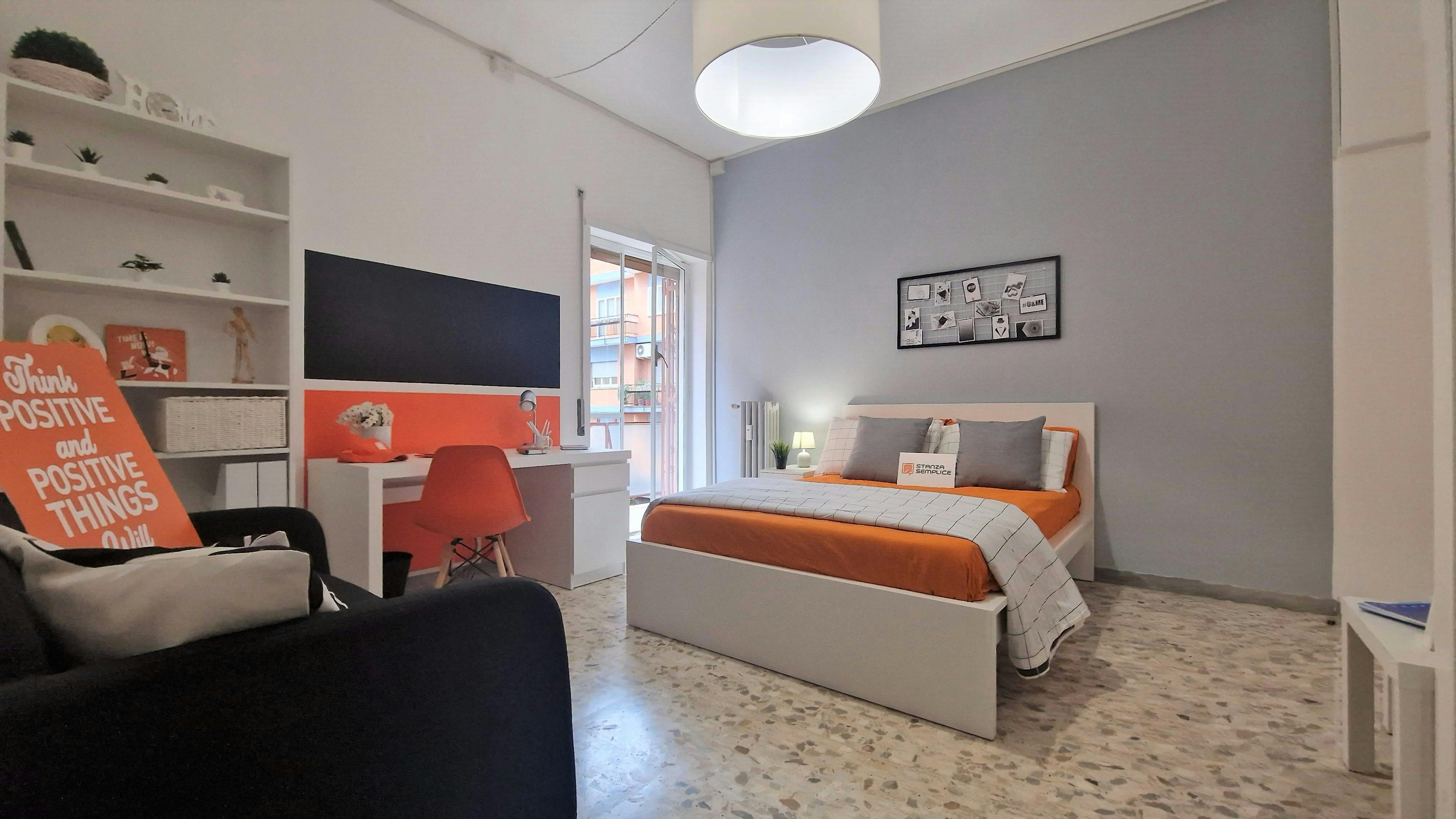 IMPORTANT: This Landlord ONLY accepts booking requests that are: SEMESTRAL: -from September 1st to February 28th -from March 1st to August 31st · ANNUAL: from September 1st to August 31st. For shorter periods the following surcharge applies: -50€ per month for 11 months rental from September 1st to July 31st -90€ per month for 10 months rental from September 1st to June 30th The Landlord only accepts bookings from students between 18 and 29 years old. IMPORTANT: rental payments are regulated as follow: For rental period longer at least 10 months: -At the check-in the tenant has to pay the admin fee of 450€ + 25% of the remaining amount -Within November 5th another installment of 25% is due -Within February 5th another installment of 25% is due -Within May 5th the final installment of 25% is due For rental period longer shorter than 10 months: -At the check-in the tenant has to pay the admin fee of 450€ + 50% of the remaining amount -Within November 5th another installment of 50% is due Zona EUR Montagnola - in posizione strategica a meno di 500 metri da divers facoltà Universitarie di Roma Tre e UNINT, di fronte a fermata dei mezzi pubblici anche con linee notturne - si affitta una bellissima suite singola ristrutturata appositamente per offrire comfort e comodità ai nostri studenti. La è dotata di letto ad una piazza e mezza, armadio 3 ante, scrivania con portaoggetti, comodino, specchio, scarpiera, divanetto relax con accesso ad un piccolo balcone. I colori delle pareti favoriscono il buon umore e aiutano nello studio...