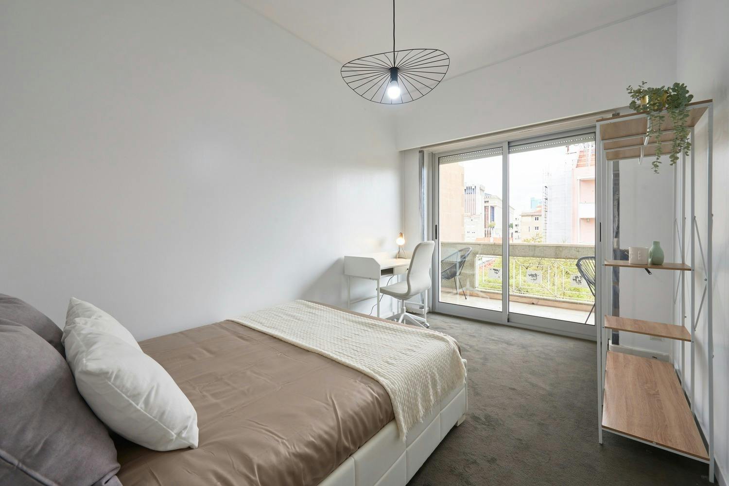 The fresh bedroom with a balcony is a welcoming and comfortable space, designed to provide residents with a peaceful and restful environment. Furnished with a cozy bed and it offers ample storage space for personal belongings. The bed is likely to be soft and comfortable, with fresh linen and fluffy pillows for a good night's sleep. Located in Campo Pequeno, this home offers easy access to a variety of transports, such as the metro Campo Pequeno (yellow line). Pharmacies, supermarkets and universities are conveniently located nearby, making everyday life more convenient. The house itself is spacious and well equipped, with 9 bedrooms and 4 bathrooms (1 of them private). The kitchen has all the necessary appliances and utensils for cooking meals. Please note: - Payment: Must be completed 72 hours before check-in directly to the landlord. This includes the last month’s rent, security deposit, and Administration fee. - Monthly Cleaning Fee: €25. Additional cleaning available upon request. - Utilities: Included up to €25 per tenant. - Bedding: Pillows, duvet, and bed sheets are not provided. - Check-ins: Available Monday to Saturday, from 4:00 PM to 7:30 PM. No check-ins on Sundays or public holidays. - Cleaning of the common areas is provided at least twice a month. A valid identification document is required to complete the lease agreement. -Your check-in will only be authorised 24 hours after the payment has been confirmed in our bank account and the contract has been signed. -Overnight guests may incur a fee - please check this with the landlord...