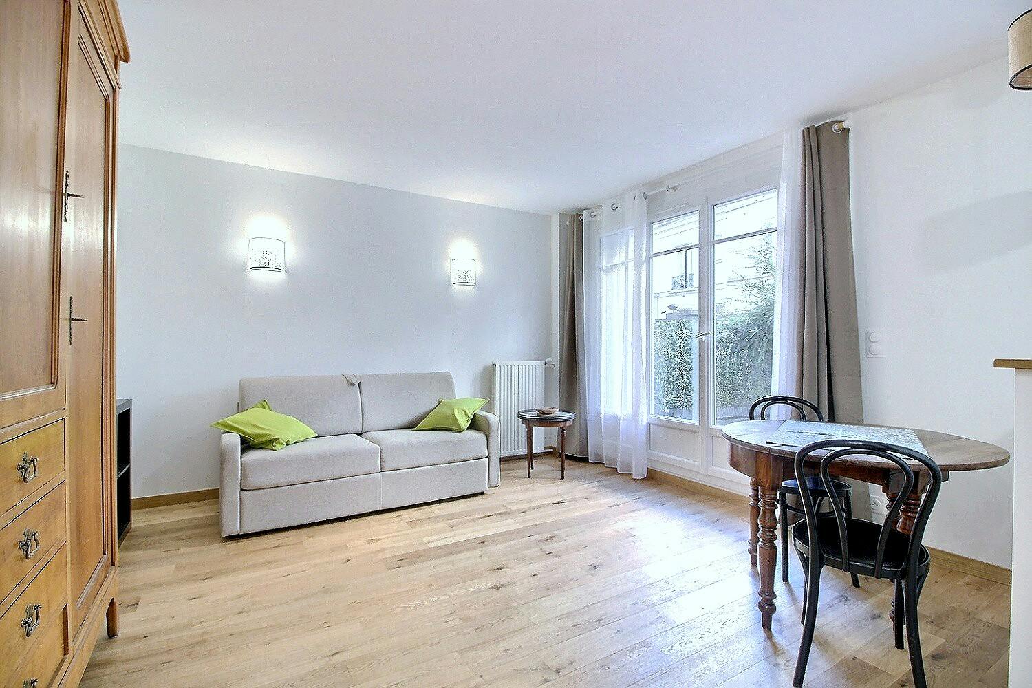 Furnished Apartment rental Studio - 29m2 - Place des Fêtes - Paris This 29 m2 apartment, Studio, is located rue Arthur Rozier in the 19th arrondissement, on the ground floor of a 20th century building and can accommodate 2 people. The apartment is equipped with a washing machine, unlimited high-speed wifi Internet access and a terrace. The 20th-century building is equipped with: elevator, entry code, badge/Vigick access and intercom, bicycle garage. The rent includes complimentary home insurance. IMPORTANT: Your booking will be confirmed ONLY when you will sign the lease and pay agency fees plus a security deposit after reservation on Housinganywhere. Agency fees will be 15% of the total rent, with a maximum amount of 1178 EUR for 12 months or less, and 8,5% of the total rent, with a maximum amount of 2356 EUR otherwise The refundable security deposit will be 1178 EUR if your rental is for 5 months or less, and 2356 EUR otherwise. If you want to pay the rent monthly, you will also have to provide documents such as payslips or tax notices showing that you or your guarantor can pay the monthly rent....