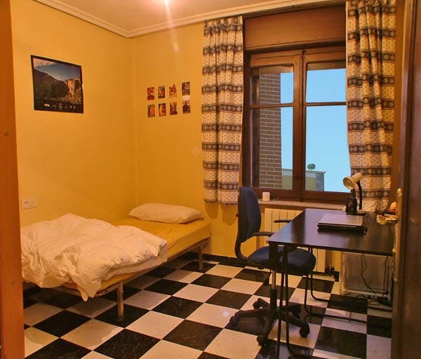 HABITACION No 1 Habitación Exterior, MUY soleada con conexión a INTERNET y conexión de televisión por cable. para periodos inferiores a 10 meses el precio subirá 20 Euros al mes; para periodos inferiores a 6 meses el precio subirá 40 Euros al mes ; para periodos inferiores a 3 meses el precio tiene que ser negociado y los gastos pueden no estar incluidos dependiendo del numero de meses. Piso situado entre el campus Unamuno, la estación de autobuses y el centro de Salamanca. Construido en los años 60 reformado totalmente por fuera y por dentro en 2003. Dispone de 6 habitaciones todas ellas exteriores MUY soleadas, con conexión para televisión y conexión para internet por fibra óptica y con tarifa plana. - Dos cuartos de baño completos con bañera - COCINA Con microondas, nevera, televisión, lavadora... Terraza a un patio central. El agua caliente y la calefacción es central. Supermercado a 200 metros y Comedor universitario en el campus Unamuno a unos 250 m. Zona muy tranquila y soleada. Tenemos también una secadora a vuestro servicio en la planta baja del edificio. *** El primer mes de estancia se cobrará una mensualidad completa, independientemente de la fecha de entrad...