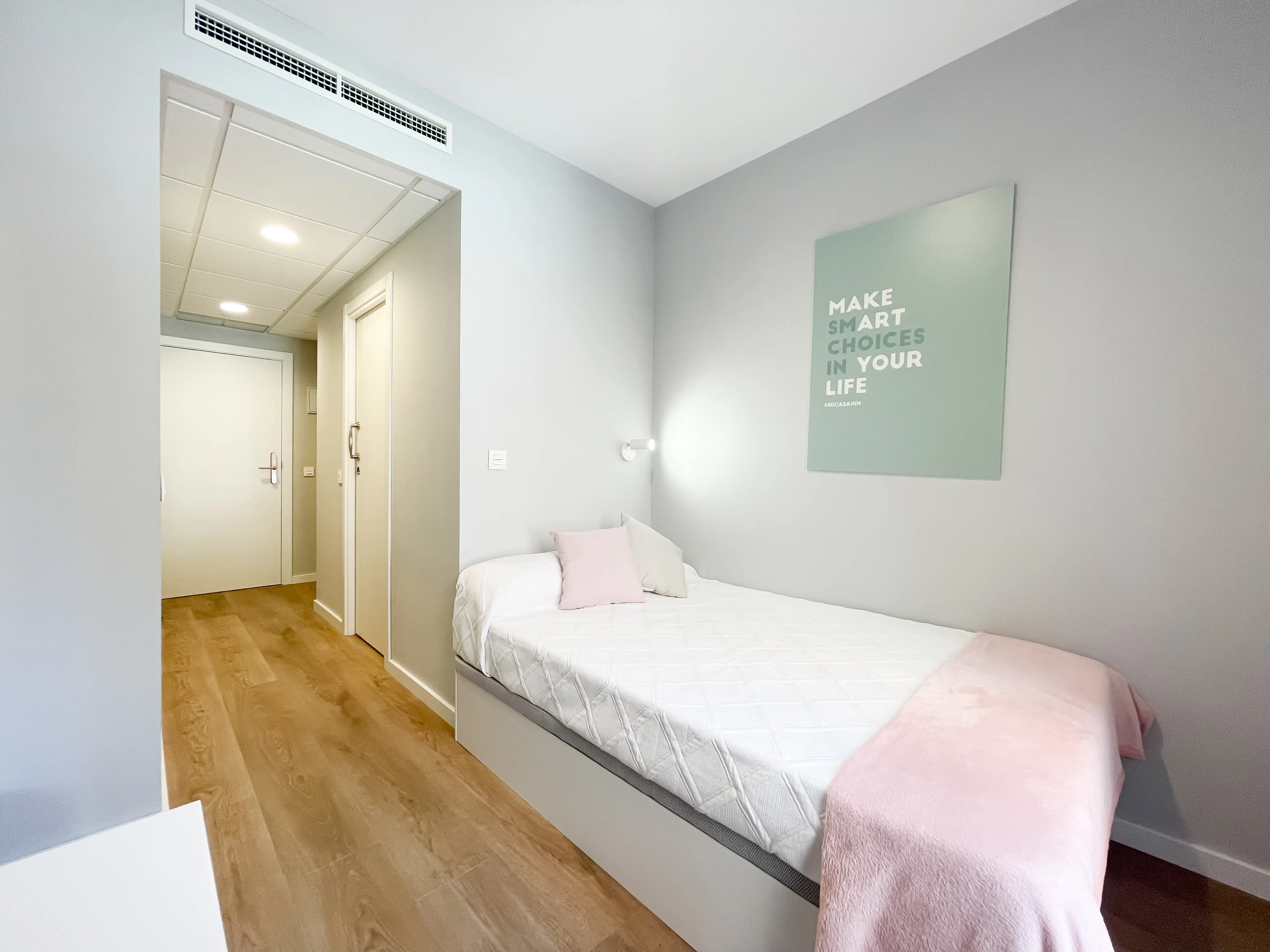 DELUXE CON TERRAZA La Residencia de LA LATINA se encuentra en el centro de Madrid. Respecto a la zona, tienes todo lo que necesitas a escasos metros, la principal estación de tren de Madrid ( ATOCHA) a solo 10 minutos, una red muy grande de autobuses. El Rastro y La Latina para poder disfrutar del Madrid más castizo.... Por otro lado, podrás disfrutar de una zona de deporte y ocio llamada MADRID-RÍO, aquí se puede combinar todo tipo de deportes como montar en bici, correr, hacer una visita guiada o remojarse en época veraniega en cualquiera de sus fuentes y surtidores... o en su playa artificial. Su privilegiada situación, en el mismísimo corazón de Madrid, lo hace especialmente accesible desde la residencia y muy próximo al corazón histórico de la ciudad madrileña. La residencia está pensada con un concepto residencia-hotel. Residencia ya que los estudiantes que en ella se alojan cuentan con una serie de zonas comunes como amplios salones con sofás, mesa de trabajo, televisión, una cocina común con casilleros individuales bajo llave en donde guardar tu comida.... etc. También disponéis de zona gaming ,biblioteca , terraza exterior, cine, TIKTOK room, gimnasio... Tenemos distintos tipos de habitación: CONFORT, DELUXE, DELUXE PLUS, SUITE......