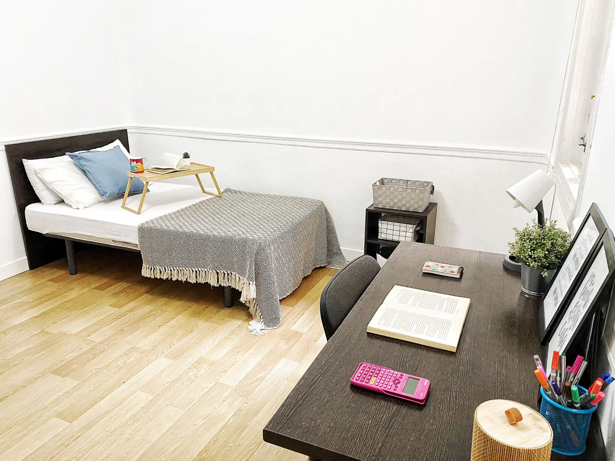 Water, electricity and gas supplies are not included, we charge a fixed fee for supplies based on the annual history of the flat, you can see the amount in the summary of payments. Shared flats have internet access. If you have questions about how to book, you can consult our manual. This double room is very warm and bright with plenty of space, two single beds, a desk and chair as well as two closets where you can place everything you bring with you as well as all your great finds from Madrid’s variety of unique shops. It’s located in the Chueca-Justicia neighborhood, in the Center district. From here you’ll be able to get to the Nebrija o the Comillas Universities between others in a matter of minutes. Near it you’ll also find lots of restaurants and shops, as well as parks and museums (like the Romanticism or History ones). The nearest metro stops are *Alonso Martinez (Lines 4, 5 and 10) and Bilbao (Lines 1 and 4).* Perfect to discover Madrid. Rental conditions: - Free Check-in time: 9:00h - 18:00h from Monday to Friday. - We offer to pick up service from the airport with a cost of 65€+VAT - The utility costs are as described in the listing. Nevertheless, if the usage of utilities exceeds the amount that the fixed price for utilities covers, it might be that extra costs will have to be paid. Please, be aware that HousingAnywhere is an online booking platform. Therefore exchanging contact details and offering viewings is not possible. If you would like to reserve this accommodation, send me a booking request or a message and I will get back to you as soon as possible....