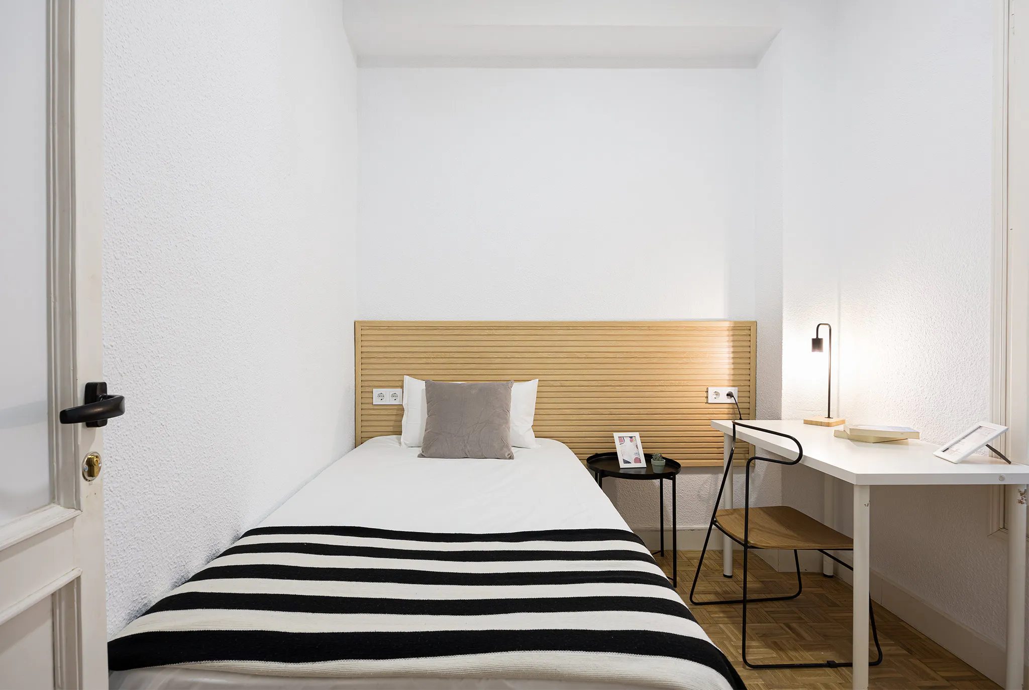 HABITACIÓN INDIVIDUAL La habitación cuenta con cama individual, zona de escritorio y armario. El apartamento cuenta con cocina completamente equipada, 1 baño compartidos entre máximo 5 personas. Nuestro coliving está enfocado a estudiantes y jóvenes profesionales, generalmente entre 18 y 40 años, y ambiente internacional. Buscamos que disfrutes de Madrid y que tu estancia sea cómoda, por lo que nuestros asesores te ayudaran ante cualquier duda. Al hacer tu reserva queremos que disfrutes con nosotros, estés cómodo y cuentes con nuestro equipo y comunidad, por ello no solo te ofrecemos un alquiler, sino que alojándote con nosotros: -Formarás parte de nuestra comunidad, teniendo acceso a eventos y actividades semanales para que descubras Madrid y te sientas como en casa siendo uno más. -Limpieza semanal de las zonas comunes. -Servicio de mantenimiento. -Posibilidad de empadronamiento (City registration) para estancias a partir de 6 meses -Servicio Medico 24/7 por Quirón Salud -Atención al cliente 24/7 a través de nuestro departamento de Atención al coliver -Invitación a eventos y actividades especiales Condiciones: -Un mes de Fianza -Membership Club -Suministros incluidos en el precio como electricidad, agua, calefacción y internet de alta velocidad (hasta un máximo de 70€ ) -Consultar estancia mínima -De documentación únicamente solicitamos DNI o pasaporte Nuestro coliving está enfocado a estudiantes y jóvenes profesionales que quieren disfrutar de una estancia en Madrid. La ubicación es inmejorable en la zona de Arguelles. Bien comunicado, se encuentran edificios de gran importancia cultural y de ocio, y cerca de las paradas de metro San bernardo y arguelles. Además, cuenta con numerosas paradas de autobuses con excelentes conexiones por toda la ciudad rodeado de restaurantes, cafés y tiendas. Check in: Lunes - Domingo: 15:00 - 24:00 Check-out: Antes de las 11:00 📅 CONTRATO QUINCENAL En el mes de entrada o de salida: - Si te quedas 14 días o menos, pagarás la mitad del alquiler de ese mes. - Si te quedas más de 14 días, pagarás el alquiler del mes completo. (El importe a pagar de cada mes aparece calculado en el resumen de pagos) 💵 Payments before the check-in: Once the reservation is confirmed, you will be required to make the additional payments (security deposit, etc.) through our secure payment system before the move-in date...