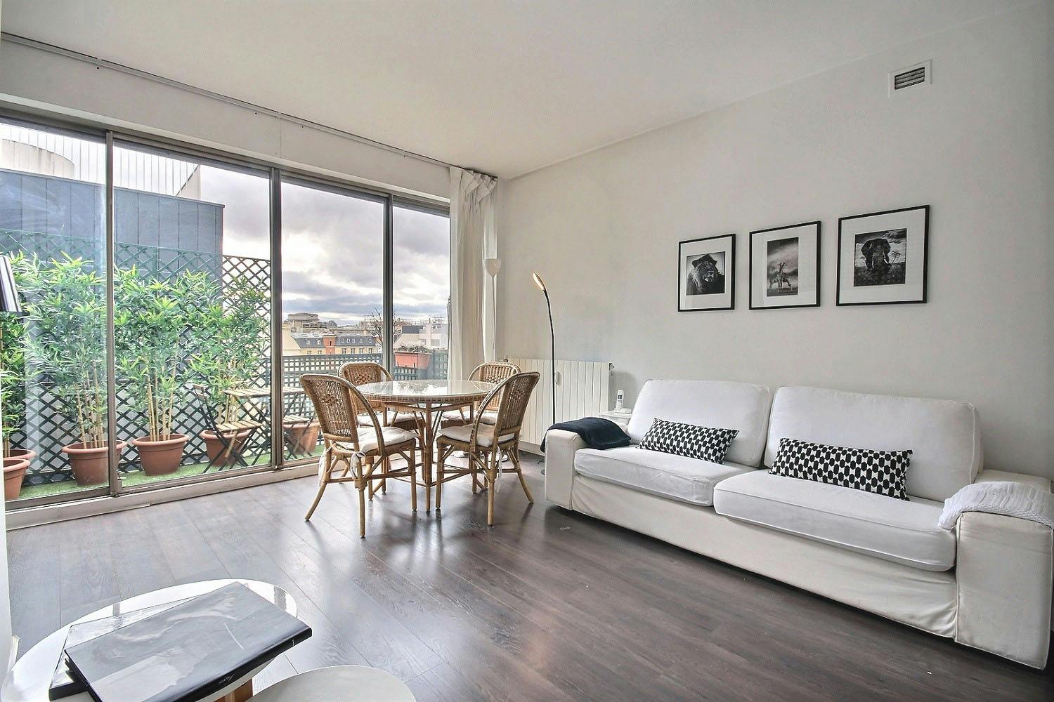 Furnished Apartment rental Alcove studio - 50m2 - Parc Monceau - Paris This 50 m2 apartment, Alcove Studio, is located rue de Courcelles in the 8th arrondissement, on the 8th floor of a 20th century building and can accommodate 2 people. This apartment is equipped with: washing machine, dishwasher, TV, unlimited high-speed Internet access with WiFi, balcony. The 20th-century building is equipped with: 2 elevators, entry code. The rent includes complimentary home insurance. IMPORTANT: Your booking will be confirmed ONLY when you will sign the lease and pay agency fees plus a security deposit after reservation on Housinganywhere. Agency fees will be 15% of the total rent, with a maximum amount of 2420 EUR for 12 months or less, and 8,5% of the total rent, with a maximum amount of 4840 EUR otherwise The refundable security deposit will be 2420 EUR if your rental is for 5 months or less, and 4840 EUR otherwise. If you want to pay the rent monthly, you will also have to provide documents such as payslips or tax notices showing that you or your guarantor can pay the monthly rent....