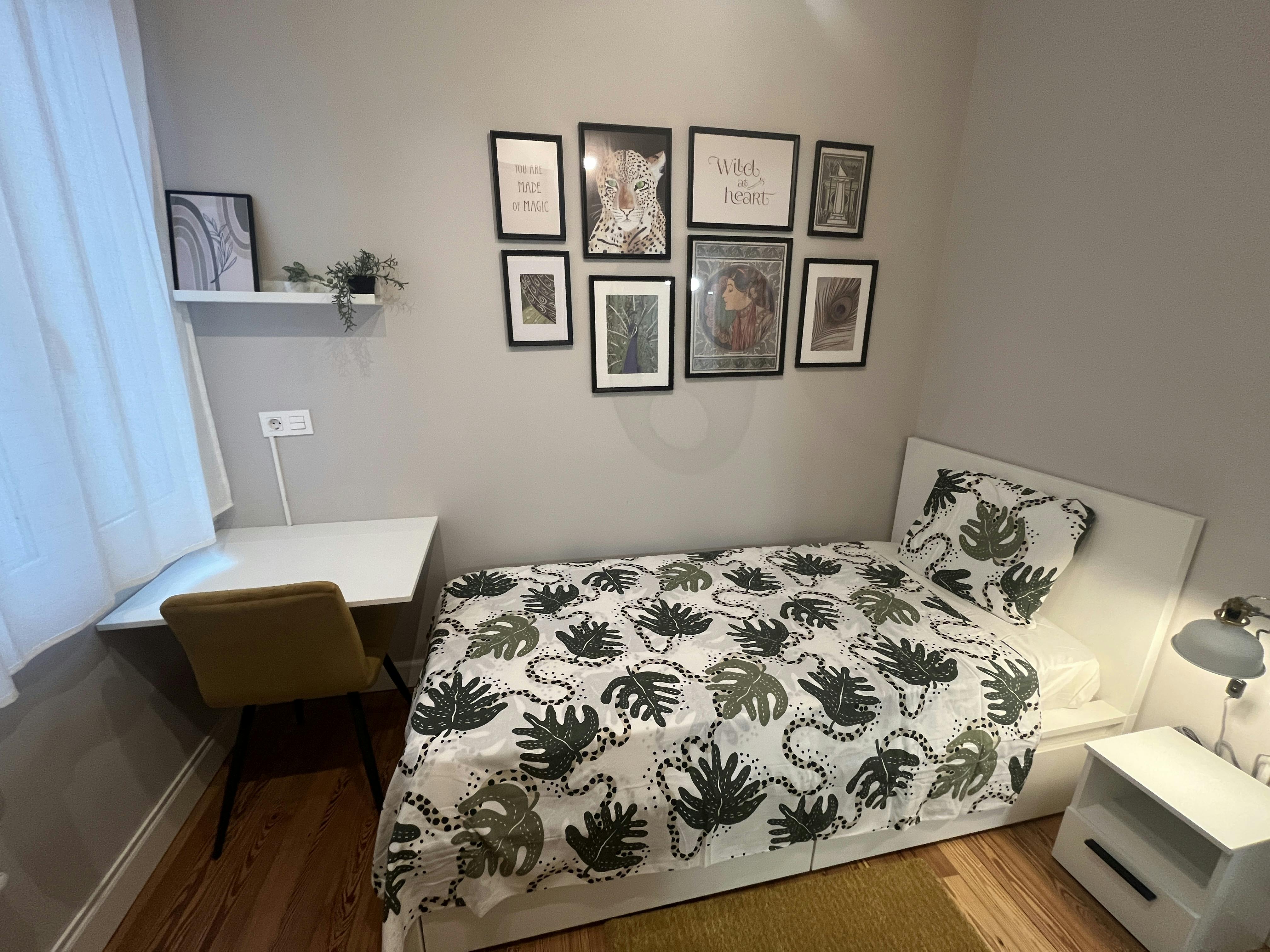 Habitación con todo tipo de detalle. La vivienda se encuentra en un a de las mejores situaciones en pleno Ensanche de Bilbao, entre los barrios de Indautxu y Abando. Se trata de una amplia vivienda con 170 m2 distribuida en 6 habitaciones totalmente equipadas, 3 baños completos comunes de gran tamaño y recién reformados así como una cocina totalmente equipada con mobiliario y electrodomésticos nuevos. El edificio cuenta con calefacción central y agua caliente El ambiente tanto de la casa como de la Comunidad vecinal es muy tranquilo. Aunque de diferentes tamaños / orientaciones, todas las habitaciones son luminosas, cuentan con ventana y están equipadas, al menos, con el siguiente mobiliario: - Cama doble (105 a 160cm) con 2 mesillas de noche - Armario (algunos empotrados) - Cómoda - Escritorio individual con silla y flexo - Cerradura privada El alquiler incluye todos los gastos así como 1 o 2 servicios semanales de limpieza, en función del número de personas que habiten la vivienda en cada momento...