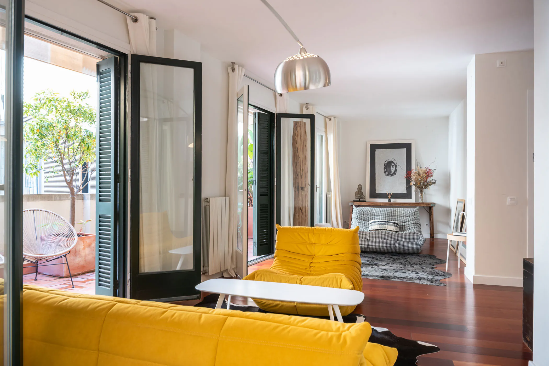 Renovated apartment with two double rooms and a spectacular terrace in one of the most sought-after neighborhoods in Barcelona such as El Born. Its warmth, light and modern decoration make it the perfect home to spend a season in Barcelona. The living room is very bright with direct access to the green terrace, the kitchen is spacious and fully equipped with a wide variety of cooking utensils and the bathroom is spacious and comfortable. The bedrooms with wardrobes and large windows to enjoy the morning sun become an ideal space for rest, high-speed WIFI, Smart Tv, electrical appliances and heating for a great stay. Its location is excellent, located in the Born, a neighborhood full of life in the heart of the old city, full of gastronomic proposals, shops and modern stores. 15 minutes from Barceloneta beach and close to many points of interest in the city...