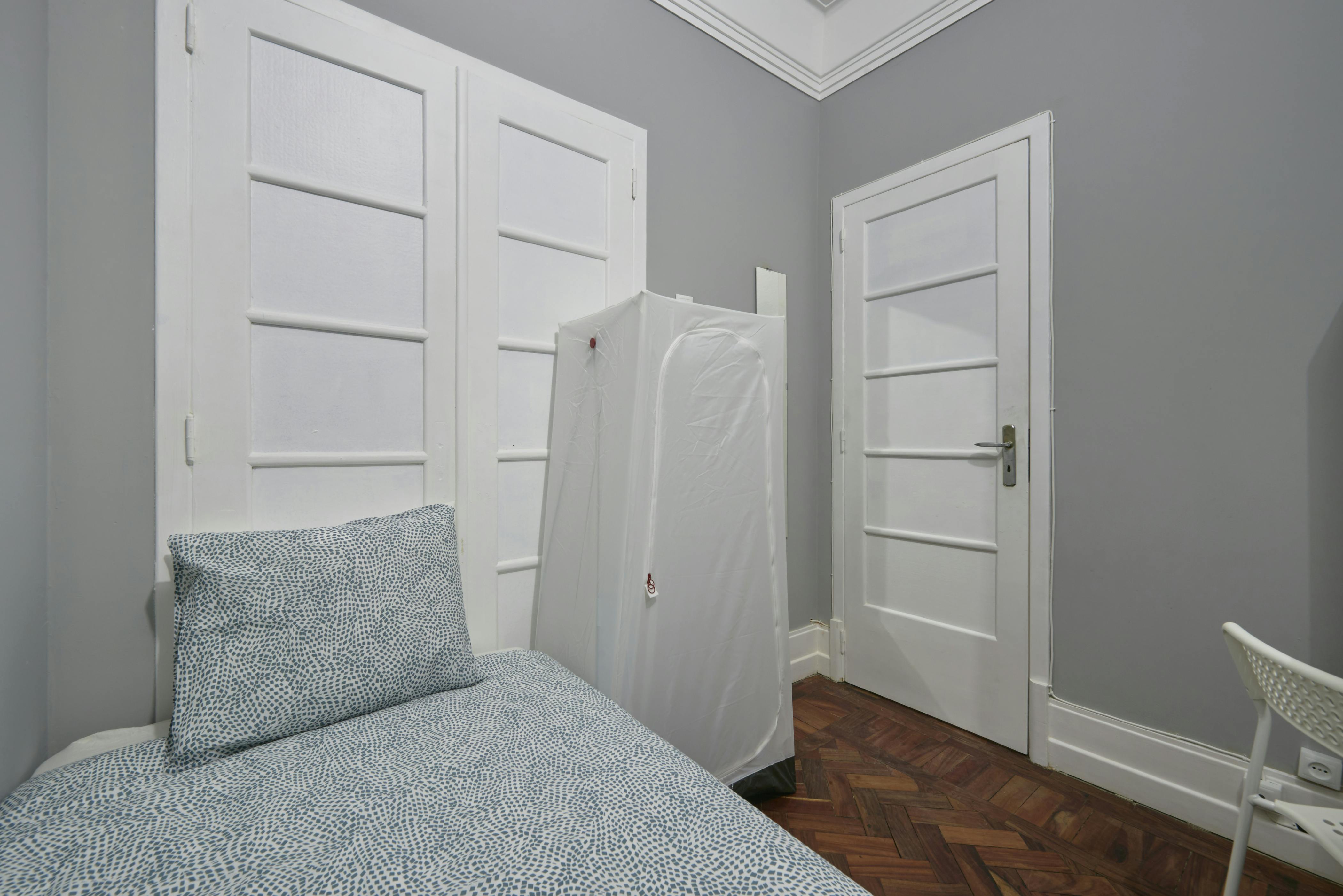 Casa da Elias VI is an associated residence in the centre of Lisbon with fourteen rooms, oriented towards students and young professionals. ROOMS The rooms are furnished with a complete bed and set of sheets, duvet, and pillow with cover, bedside table with lamp, wardrobe, chest of drawers, desk with bench and dustbin. In-room TV is available on request. COMMON AREAS The common area has a dining table with benches, a TV, reading material, and access to the clothesline. There is unlimited wireless Internet throughout the house, cable TV in all rooms and the common area. The house is cleaned twice a week by a cleaning maid. KITCHEN The kitchen has three refrigerators with a freezer, stove, oven, and microwave and is fully equipped with crockery, glasses, cutlery, pots, pans and a set of knives. There are four (4) bathrooms. LOCATION This location allows the house to benefit from a varied local commerce network, making use of a Continente supermarket, mini-markets, cafes, restaurants, butchers, pharmacies, and banks. TRANSPORT In a few minutes, it is possible to reach the metro stations of Saldanha (Yellow and Red Lines) or Alameda (Green and Red Lines). The house is in a central location, which allows you to be equipped with a wide range of public transport with connections to all parts of the city, including the airport: metro, bus and taxis! Please, read carefully the whole description before sending a booking request: ✅ YOUR MONTHLY RENT INCLUDES: - Utilities (Up to €40/month of water, electricity, gas). - WiFi. - Cable TV. - Weekly cleaning of common areas of the house. - Maintenance service. - Telephone service for emergencies. 💵 REQUIREMENTS: + Security Deposit (equivalent to the amount of one month's rent and paid during the check-in). + Admin fee (Paid per person once during the check-in). + Extra cost of 50€/month in case the accommodation is intended for 2 people. 📅 MONTHLY CONTRACT: Payment for whole months, regardless of your move-in and move-out date. 🕛 CHECK-IN TIME: - Monday to Friday - from 8 am until 6 pm. 🌆 OPTIONAL EXTRA SERVICES (under request) - Check-in outside working hours or during weekends - 34.99 € (Working hours: Monday to Friday - from 8 am until 6 pm). - Fridge inside the room (minimum stays of 6 months) - 14.99 € p/month. - Special cleaning of the room 49.99 € (1 X per week). 🔊 RENTAL CONDITIONS: - There is a rental contract that must be signed and respected by the tenant(s). - For the rental contract it is necessary a copy of an ID Document and fiscal number. - During the booking process it is mandatory to be indicated who are the persons that are going to rent the accommodation and do the check-in. - The security deposit must be paid during the check-in and it will be returned if the accommodation is left in the same condition as received. The security deposit can't be part of the last month's rent. - The rent must be paid until the last day of the previous month. - Every tenant is responsible for keeping the accommodation clean and in good condition. - Visitor(s) policy: Yes (Under request and approval). - Parties are not allowed. - Loud noises are not allowed after 22:00. - Smoking inside the property is not allowed. - Pets or animals are not allowed. We carry out contracts, issue receipts within the scope of the law and assist with obtaining the Residence Visa...