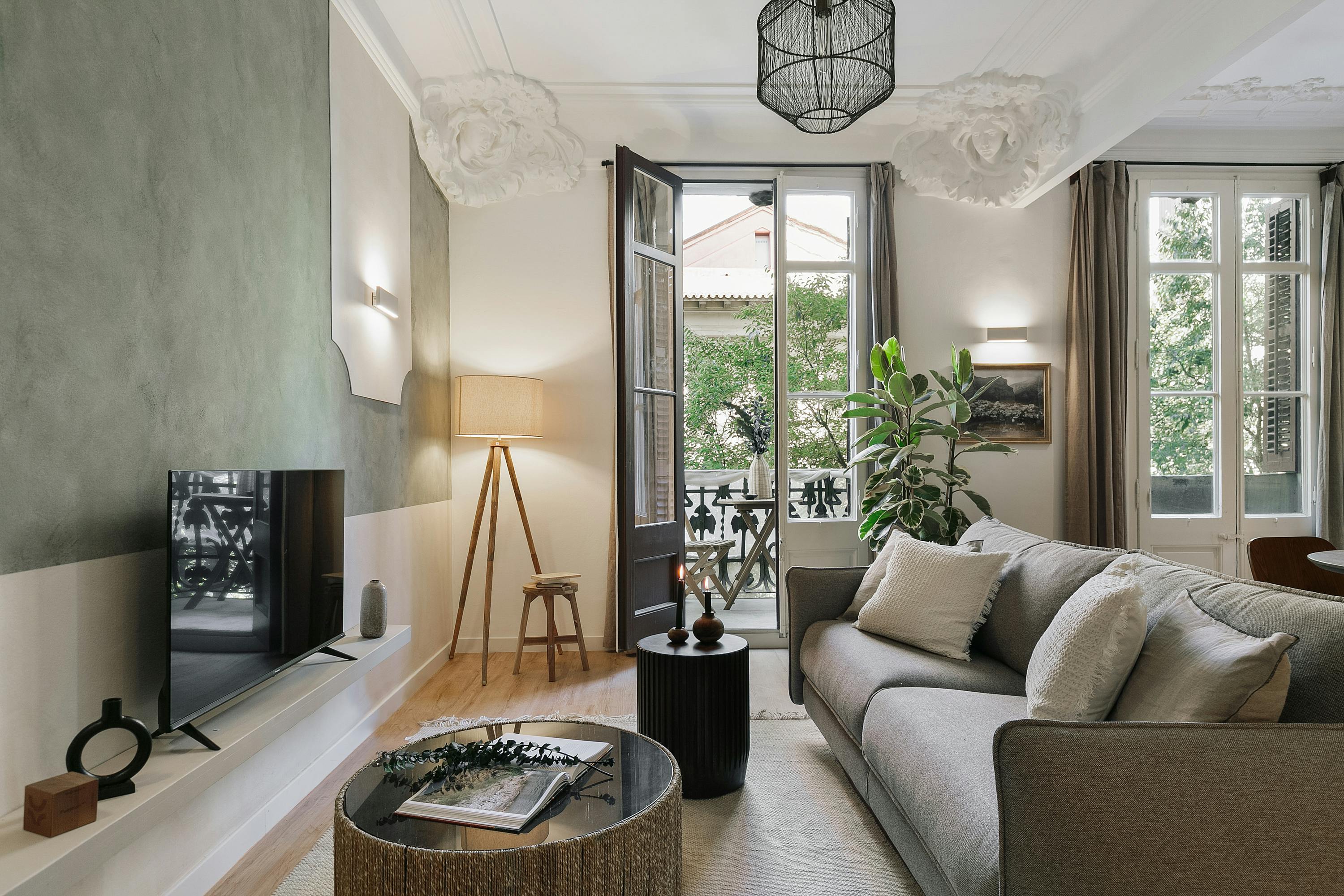 Welcome to Paestum, a charming and cozy studio apartment located in the vibrant La Nova Esquerra de l'Eixample. From this neighborhood, you'll have easy access to Barcelona's many attractions, restaurants, and shops. This 50-square-meter space offers a delightful blend of comfort, convenience, and beach-themed design, ensuring you have a memorable stay. Paestum welcomes you with an open and airy studio layout. The main sleeping area features a comfortable queen-size bed, separated by elegant curtains for privacy. Additionally, a sofa bed provides extra sleeping arrangements. The apartment features a modern and stylish bathroom, complete with all the essentials you need for your stay. The heart of Paestum is the open plan living room and kitchen area. Decorated with a beach-themed design, this space exudes a relaxing coastal vibe. Here, you'll find a fully equipped kitchen with all the amenities you need to prepare your favorite meals. The dining table and dedicated workstation, allows you to share meals with loved ones or catch up on work or plan. The living room is a comfortable retreat with a full entertainment system, perfect for unwinding. Large doors lead to a balcony, where you can enjoy the Mediterranean climate and the outdoor sitting area. For your comfort, Paestum is equipped with air conditioning in all rooms, ensuring a pleasant indoor environment. Fully furnished, this apartment comes with everything you need, including bedding and linens. This apartment comes equipped with a ducted air system for absolute comfort. *We welcome pets, fees are subject to apply. Guests will be informed of any additional charges in the final contract. *We cannot be held liable for any noises (construction, or street noise) done outside the apartment. We also cannot be liable for any rooms without air conditioning (all the rooms with air conditioner will be explicitly explained in our description). We will not accept any reservation cancellations or refund requests related to these two issues. *Our in-house design team expertly selects all apartment furniture and decor to ensure the highest level of quality and comfort. As part of consistent home upkeep, design improvements, and photo staging, there may be minor differences in furnishings seen in the photos and what you find in the apartment. Inquire with a sales agent for any questions or doubts. *This accommodation may only be used for stays longer than 31 nights for personal purposes such as holiday, recreational, or leisure. We may request documentation proving your permanent residence and the reason for your stay in Catalonia, and may cancel the reservation if it does not meet the legal requirements. The information provided may be submitted to the relevant registry and/or administrative authority in accordance with Catalan regulations....