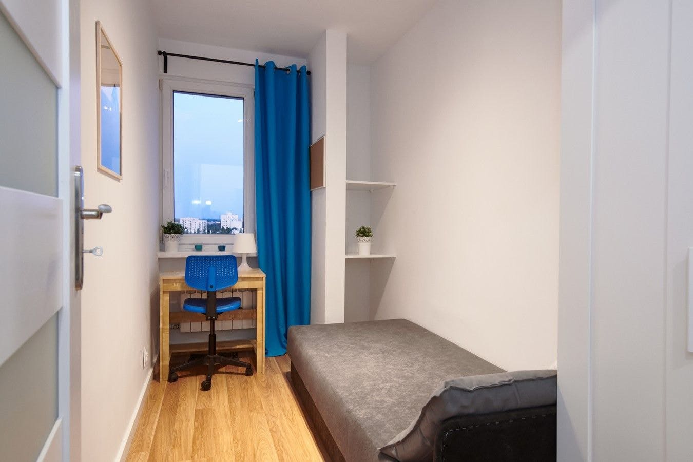 🏡 Cozy Single Room in Stokłosy – Ursynów, Warsaw Welcome to your comfortable single-room retreat in the lively Stokłosy area of Ursynów, Warsaw. The room features a single bed, desk with chair for study or remote work, and a spacious closet to keep everything neatly organized — ideal for students or professionals seeking comfort and practicality. ✨ The apartment consists of five rooms, offering a friendly community atmosphere while ensuring privacy for each resident. You’ll enjoy access to a shared bathroom with a shower and a fully equipped kitchen with a microwave and washing machine, making daily routines easy and convenient. 🌳 Prime Location & Lifestyle Located in the heart of Ursynów, Stokłosy combines modern urban living with a welcoming neighborhood feel. The area is known for its green spaces, cafés, shops, and great transport links, providing the perfect balance between convenience and relaxation. Whether studying, working, or exploring the city, you’ll feel right at home here....