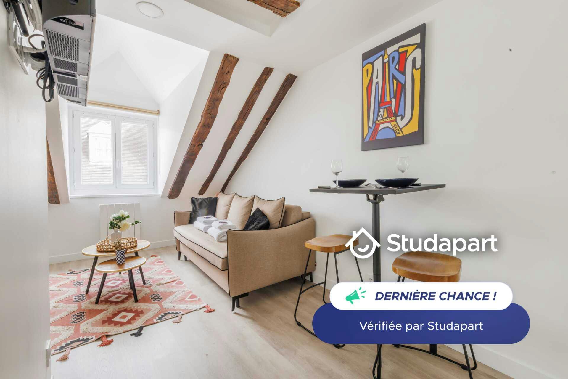 ## Space Ce logement est disponible pour un bail mobilité UNIQUEMENT. Le bail mobilité est un type de bail de location meublée de courte durée. Il vise à faciliter la mobilité des locataires, et notamment ceux amenés à déménager pour des raisons professionnelles (mutation ou mission), les étudiants, les jeunes en formation, en alternance ou en stage. Il s'agit d'un studio de 14m2 situé au 5eme étage sans ascenseur. Très jolie vue sur la Tour Eiffel !! L'appartement se trouve à 2 minutes à pied des Invalides, et se situe à 10 minutes à pied du Champ de Mars. Il se compose de: - Une cuisine, équipée et fonctionnelle : frigidaire, plaques de cuisson, machine à café, grille-pain, bouilloire, micro-ondes, lave linge ... - Une pièce à vivre avec un canapé convertible et une TV - Une salle d'eau avec douche et WC - Des rangements - TV et Internet haut débit - Draps et serviettes de toilettes fournis ## Access Vous aurez accès à l'ensemble de l'appartement, pour vous sentir comme chez vous. ## Interaction Nous sommes disponibles à tout moment, par téléphone, email ou SMS. ## Neighborhood À l’Ouest de Saint-Germain-des-Prés, le 7e arrondissement est l’un des plus bourgeois de Paris. On peut également le qualifier de quartier des musées puisqu’il possède à lui tout seul le musée d’Orsay, le musée du quai Branly, le musée Rodin et le musée Maillol. En plus, on retrouve des hôtels particuliers, des monuments historiques, des magasins de luxe, l’Ecole Militaire, l’Hotel Matignon, l'assemblée nationale, la Place du Palais-Bourbon et... la TOUR EIFFEL. C’est sans doute grâce (ou à cause de) ces monuments luxueux qui font qu’il est l’arrondissement le plus aisé de la Ville. Autour de la Rue du Bac, l’agréable quartier de Sèvres-Babylone regorge de commerces fins et de boutiques de haute-couture ou de prêt-à-porter. ## Transit La situation géographique de l'appartement vous permettra de vous déplacer très facilement et rapidement dans l'ensemble de la capitale via ces nombreuses possibilités de transports en commun : -Métro: La Tour-Maubourg (ligne 8), situé à 4 minutes à pied - RER C: Pont de l'Alma, situé à 10 minutes à pied - Nombreuses lignes de BUS jour & nuit - Station Vélib - Plusieurs compagnies de Taxi disponibles : Les taxis G7 (la plus utilisée) : appelez le 36 07. Des places de moto devant la résidence et de voiture. (Paiement 9h-19h) ## Notes Nous vous demandons de nous fournir les pièces justificatives nécessaires : - 1 pièce d'identité - 1 justificatif du motif du séjour (professionnel ou scolaire) - 1 adresse électronique 1 contrat vous sera envoyé par email et un état des lieux sera effectué à votre arrivée et à votre départ. --- "POUR LES CHECK-IN E"POUR LES CHECK-IN Arrivée en SEMAINE - Le Check-in : entre 15h et 18h Un agent prendra contact avec vous pour planifier votre arrivée, et échanger sur la modalité de récupération des clefs. Early check-in : entre 10h et 15h sous réserve de disponibilité. Late check-in : entre 19h et 23h, il vous faudra venir récupérer les clef à notre bureau Arrivée le WEEKEND Le samedi ou le dimanche : entre 15h et 23h Les clés seront à récupérer dans nos locaux situés à proximité de l'Arc de Triomphe. Nous nous assurerons que votre arrivée se passe en toute tranquillité, et nous sommes à votre disposition pour répondre à toutes vos questions." Updated on 18/02/2026 Le propriétaire de ce bien utilise Studapart pour louer son logement en toute sécurité. *Comment ça marche ?* Vous recevez un email Studapart et cliquez sur le lien de l’annonce. Vous créez votre compte Studapart et envoyez votre candidature (dossier + message) sans aucun frais. Si votre profil est retenu, vous pourrez faire une demande de réservation. Les frais Studapart ne sont débités qu’en cas de confirmation de réservation afin de vous garantir une location 100% sécurisée...
