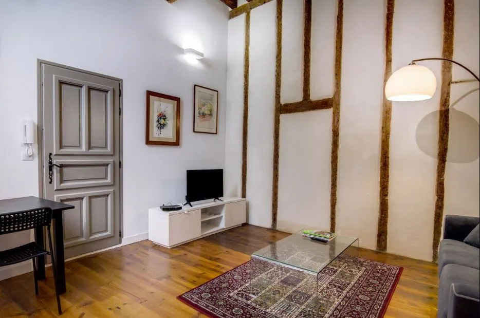 Laissez-vous séduire par cet appartement typique de 35m2 disposant d'un beau salon avec briques et poutres apparentes. Cette belle pièce de vie dispose d'un beau et confortable canapé convertible en velours, d'une TV écran plat et d'un espace bureau. La cuisine séparée est entièrement équipée: frigidaire, congélateur, plaque de cuisson, lave vaisselle, Cafetière Nespresso.. afin d'y préparer des mets de choix...