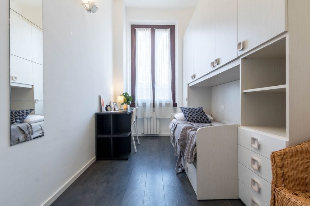 Amazing three-room apartment in Via Pezzotti, just 10 minutes from Bocconi University and IED (Pompeo Leoni campus). Also ideal for students of IULM, NABA, Cattolica, and UNIMI. The flat is located in a convenient and strategic area, perfect for university students. From here you can easily reach Bocconi University, IULM, NABA, IED (Pompeo Leoni), and the lively Navigli district. The neighborhood offers everything you need, including supermarkets, shops, and local services. This beautiful apartment features a bright living room with a fully equipped open-plan kitchen (including a dishwasher), one single bedroom, one double bedroom, and a bathroom with shower and washing machine. The flat is located in the heart of southern Milan, right in the university area: * IED (Pompeo Leoni): 12 minutes on foot * Bocconi: 13 minutes on foot * NABA: 13 minutes on foot * Cattolica: 20 minutes by Tram Line 3 The neighborhood offers plenty of amenities, including supermarkets and all essential services. An Esselunga supermarket is just a 1-minute walk away. This strategic location allows you to enjoy the uncountable activities that Milan offers. You can move around by walk but also thanks to a great transportation network: - TRAM 15 Duomo (7 stops); - TRAM 3 Piazza Ventiquattro Maggio Colonne di San Lorenzo (5 stops); - Metro Green Line Abbiategrasso (tram 15 for 3 stops). Milan, the Italian fashion capital, is one of Europe’s trendiest destinations, celebrated for its rich history, innovative cuisine, and visionary designers. Elegant palaces, tree-lined boulevards, and cutting-edge boutiques create a unique urban landscape. The city is full of vibrant restaurants and clubs all year round, while also offering priceless historical landmarks such as the Duomo, Castello Sforzesco, Quadrilatero della Moda, Galleria Vittorio Emanuele, Palazzo Reale, and Leonardo da Vinci’s Last Supper. - Don't smoke - Pets are not allowed - Parties are forbidden - Take out the trash daily - Short-term visits are allowed Intimate and nice single room in Via Pezzotti The room is fully furnished with a wardrobe, a desk with a lamp, versatile shelves, and two beds—one of which is a pull-out. It's an ideal solution for young professionals or university students. ALL BILLS ARE INCLUDED up to 50 euro of expenses per month (if you will do a normal amount of usage, you would not have to pay for it!). After the payment of the first month rent on HousingAnywhere, to finalize the reservation, the tenant has to pay the deposit and the admin fee. The admin fee covers: -weekly cleaning service of the common areas for the entire duration of the contract; - contract registration fees (registration tax, stamps and registration fee); -maintenance. Contracts can’t end on 30 of April - 31 of May - 30 of June. Cancelling contract in advance is possible with three months notice period only after three months contract. If you cancel the contract before the natural ending you have to pay 200€ penalty...