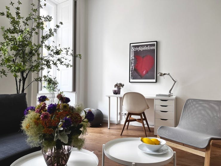 The room: Bright, spacious room 32m2 in completely renovated old apartment. With air conditioning. The bright and modern furnished apartment has 3 bedrooms, a shared kitchen-living room with dining area and 2 bathrooms with shower. Annual rent The apartment is fully furnished with Bed, wardrobe, desk, sofa bed. - bed linen - Internet connection Kitchen with dining area of about 17m2: - Fitted kitchen with electrical appliances (dishwasher, microwave, fridge...). 2 bathrooms - with two showers - washing machine - 2 toilets Location: The apartment is located in the nightlife district in the centre of Budapest. Right next to the Gozsdu udvar. You live in the hippest area with many bars, clubs and restaurants. In five minutes you are at Deák Tér, the central junction of the underground lines. From there you have the best connections in all directions. There are many shopping possibilities within a few minutes. Miscellaneous: Due to its central location, the apartment is not suitable for people seeking peace and quiet. Deposit: 2 months to be paid before moving in...
