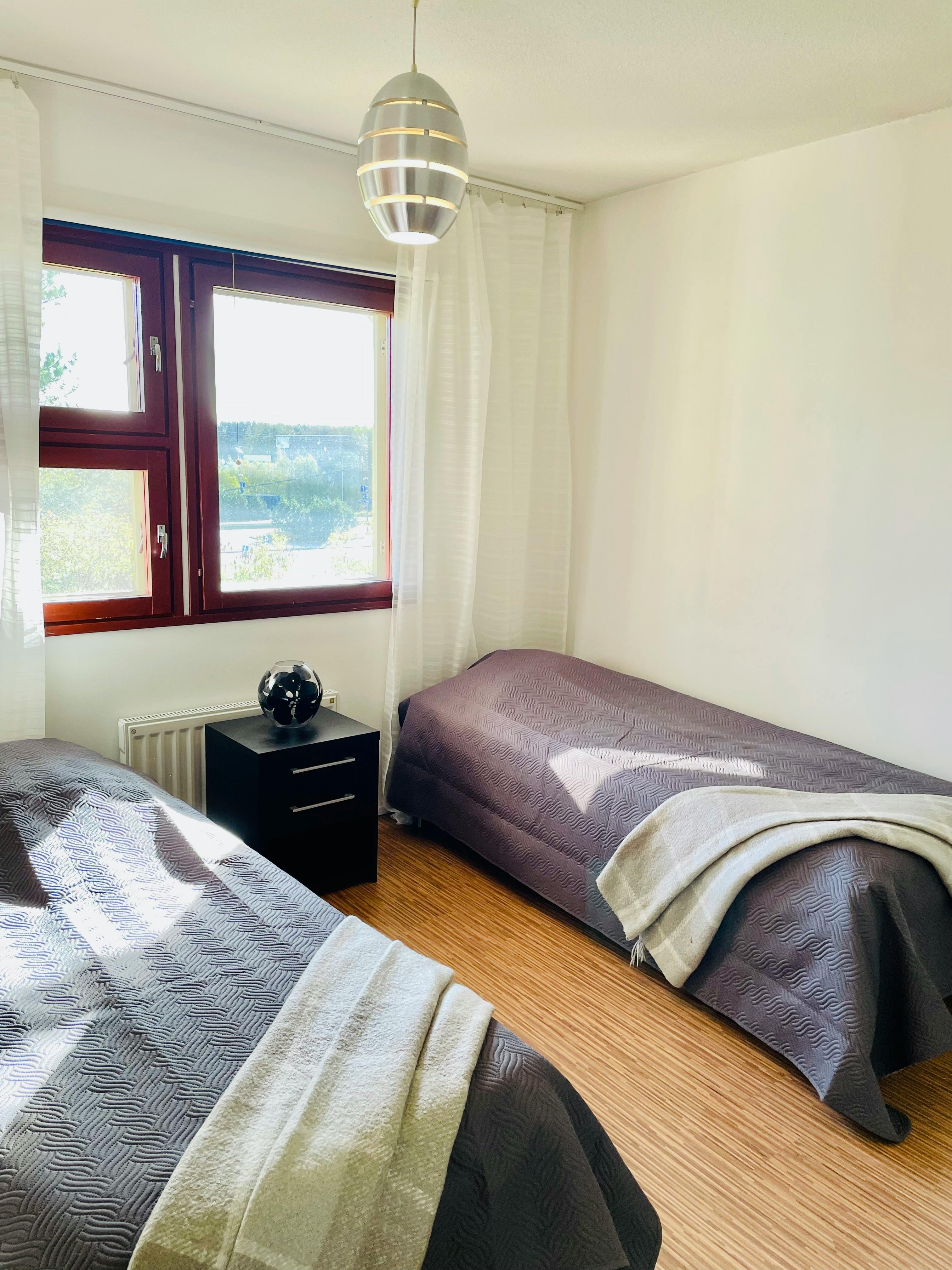 This apartment is now rented for long term but you can ask for similar apartments (size 30m2 - 35m2) that I have in Espoo and Vantaa reqions. Updated 01.01.2024 --- Cozy furnished apartment for rent. Easy access to Helsinki with car or train and airport through ring 3 highway. 25 minutes to Aalto university campus (by car). Aalto campus also accessible by tram from Leppävaara. A fully furnished family apartment with its own entrance is now available for rent. For rent, a furnished family apartment in a central location near the train station. In this cozy apartment, there is a glass brick wall decorating the living room. The apartment's kitchen has dishwashers and other necessary household appliances for all kinds of living and cooking. The apartment also has a spacious open balcony and a private sauna. Built in the 1984s, you can reach the services of the center of Masala and train connections to the capital region within walking distance. The apartment complex is very peaceful and the yard is cozy surrounded by bushes. The apartment is located in Luhtitalo on the second floor within reach of the stairs. The housing association operates a daycare center that does not cause any disturbances to the apartments. The apartment can be found near Kirkkonummi Masala with comprehensive services. It takes 2-3 minutes to walk to the train station and you can get to Helsinki in less than half an hour. By car, you'll be on your way to Ring 3 in no time. S-market, K-Market, Posti and pharmacy can be found a few hundred meters away. Likewise, jogging paths can easily be reached from the apartment. If you are interested about apartment then contact me straight. Contact details in last apartment photo. → Come by car, train or bus ⊹ High-quality beds (4x) and you can get an extra mattress on request. ⊹ Sofa ⊹ Blackout curtains ⊹ Grocery store nearby ⊹ Trains to Helsinki and connection to the airport. ⊹ The apartment is fully equipped for shorter and longer bookings. It is also possible to book the apartment furnished for longer visits. ⊹ Sheets and towels are always included in the reservation. ⊹ In the kitchen area you will find full kitchen furniture, crockery and a coffee maker, kettle and microwave oven. ⊹ The apartment is in a quiet housing complex and in a desirable area, so you can spend a peaceful visit in this apartment. In the neighborhood of the apartment you will find the S-market and K-market grocery shop. Please also ask for straight queries about availability...
