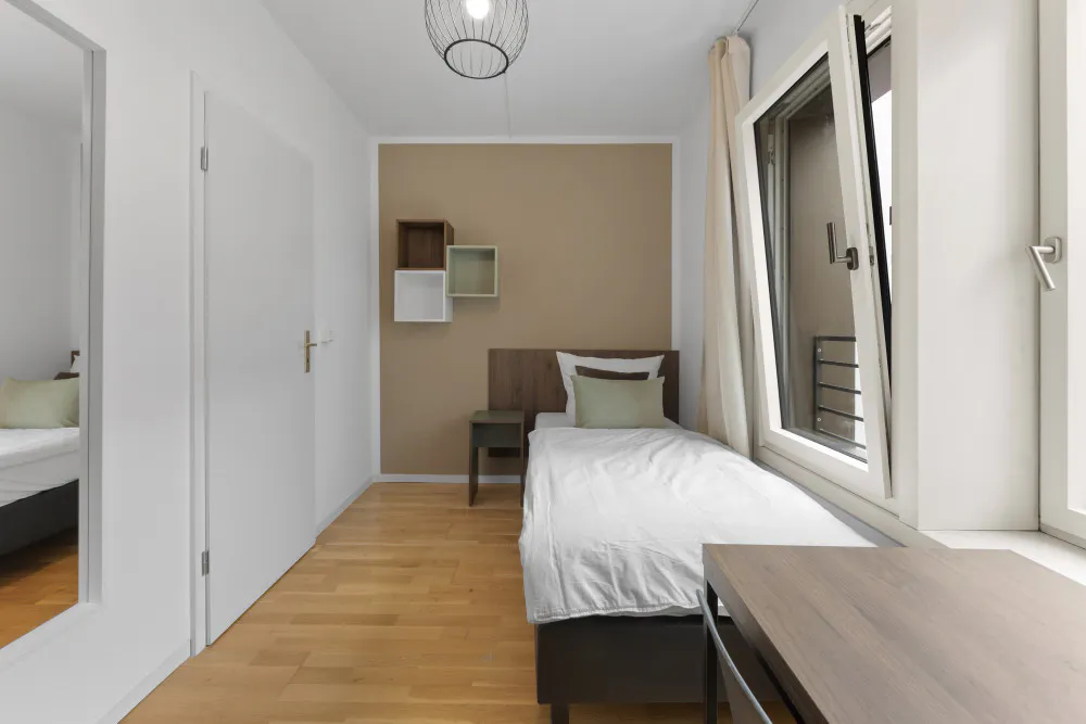 Welcome to our beautiful, newly renovated apartments, where you bring the spirit, and we take care of the rest! Our extensive collection of co-living apartments boasts spacious and well-lit rooms with a contemporary design. What's more, everything is fully furnished, so you can quite literally grab your suitcase and move in tomorrow! We are a vibrant and cosmopolitan community located in 'Mitte,' one of Berlin's most central and trendiest neighborhoods. This area is renowned for its historical, cultural, and commercial significance, making it a focal point for both locals and tourists. Friedrichstraße is home to a variety of cultural attractions, museums, theaters, and galleries. Along the street, you'll also find a mix of high-end boutiques, department stores, and international brands. Moreover, our location is incredibly convenient, with easy access to public transportation. You'll find several U-Bahn (subway lines U6, U5, and U2), bus routes, and S-Bahn (suburban train lines S1, S2, S25, S26, S3, S5, S7, and S9) stations in close proximity. Services / facilities that are INCLUDED in the price: - heating, electricity, water - high speed internet - fitness room (coming soon) - community manager - great location - laundry room (including washing machine & dryer). Please note that although a common laundry room is included in the price, the costs per washing cycle / program are paid individually (2,80€ washing machine & 2,50€ dryer) and are therefore not included in the overall price. To give you an overview of your new home, we have listed all of the integrated facilities below: THE APARTMENT: • equipped kitchen • oven • dishwasher • *balcony / terrace (not all the apartments and rooms have balcony or terrace) THE BEDROOM: • wardrobe • desk • chair • mirror • lamp • bed (90cm) • mattress • blanket • pillow • curtains • floor lamp REQUIRED documents: - Proof of income (last 3 months payslips) or work contract - Proof of enrolment (just for students) - Copy of guarantor's ID (only if you do not have proof of income) - Copy of guarantor's work contract (only if you do not have proof of income) *The landlord only accepts tenants between 18 and 40 years old. *Please note that in order for you to get your keys, the deposit must be transferred to the landlord ́s bank account once the rental agreement has been signed and before moving in. Check-in /out: - Check-in hours: Monday - Friday from 10:00 - 16:00 (A check in outside our working hours is possible upon availability of some of our community managers and with an additional charge of 60,00€.) - The key transfer will take place at Village M (you will receive the address once your booking is confirmed) IMPORTANT!!! Please take into account that the decoration is solely included for inspirational purposes and will not be present in your room either...