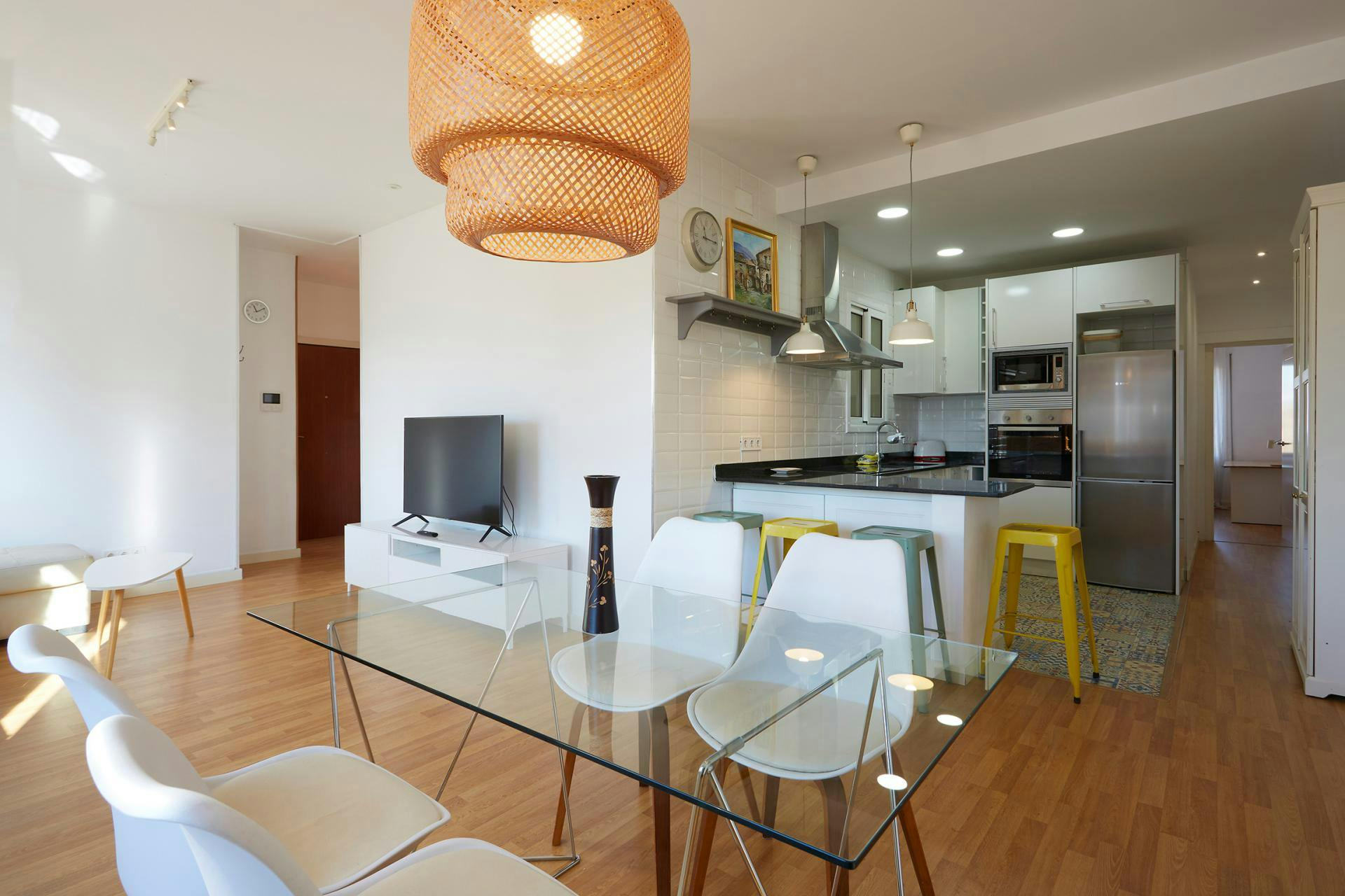 Apartment for rent in the Sant Martí district of Barcelona . This apartment has 75m2 and faces east, it is fully furnished and equipped , ready to move into. It consists of 2 double bedrooms with double beds and wardrobes, each of the bedrooms has electric radiators, as well as having a spectacular view of the Agbar tower , a bathroom, an American-style kitchen with a breakfast area, a living room with a comfortable sofa bed with solid wood furniture. All rooms have electric radiators. The only room that has an air conditioning machine is the living room. It has an excellent location as it is a few meters walk from the beach, next to the central park of Poblenou and the bird. Diagonal and a few steps from Gran Vía de Les Corts Catalanes and Plaça de Les Glories Catalanes. With all the necessary services in the vicinity with are: schools, medical centers, green areas and parks, gyms, theaters, cinemas, places of tourist interest, and municipal market . The metro stops to take are Poblenou L4 and Glories L1 . ADMINISTRATION FEE: 1 month's rent + 21% VAT LOCAL TAXES (I.T.P.): 0.5% of the total reservation (Monthly cost calculated as "other" in the Rent summary. The total amount will be collected before the check-in) BOOKING PROCESS: After the reservation is confirmed, you will be required to pay the remaining payments before the handover of the keys. EARLY-BOOKING POLICY (requests 2 months in advance) If you are planning to book an occupied apartment more than 2 months in advance, we cannot confirm the availability yet (The current tenants have the right to extend their stay). Please, get in contact with us 2 months before your move-in date. NO DISCOUNTS POSSIBLE BOOKING PROCESS: After the reservation is confirmed, you will be required to pay the remaining payments directly to the advertiser before the handover of the keys...