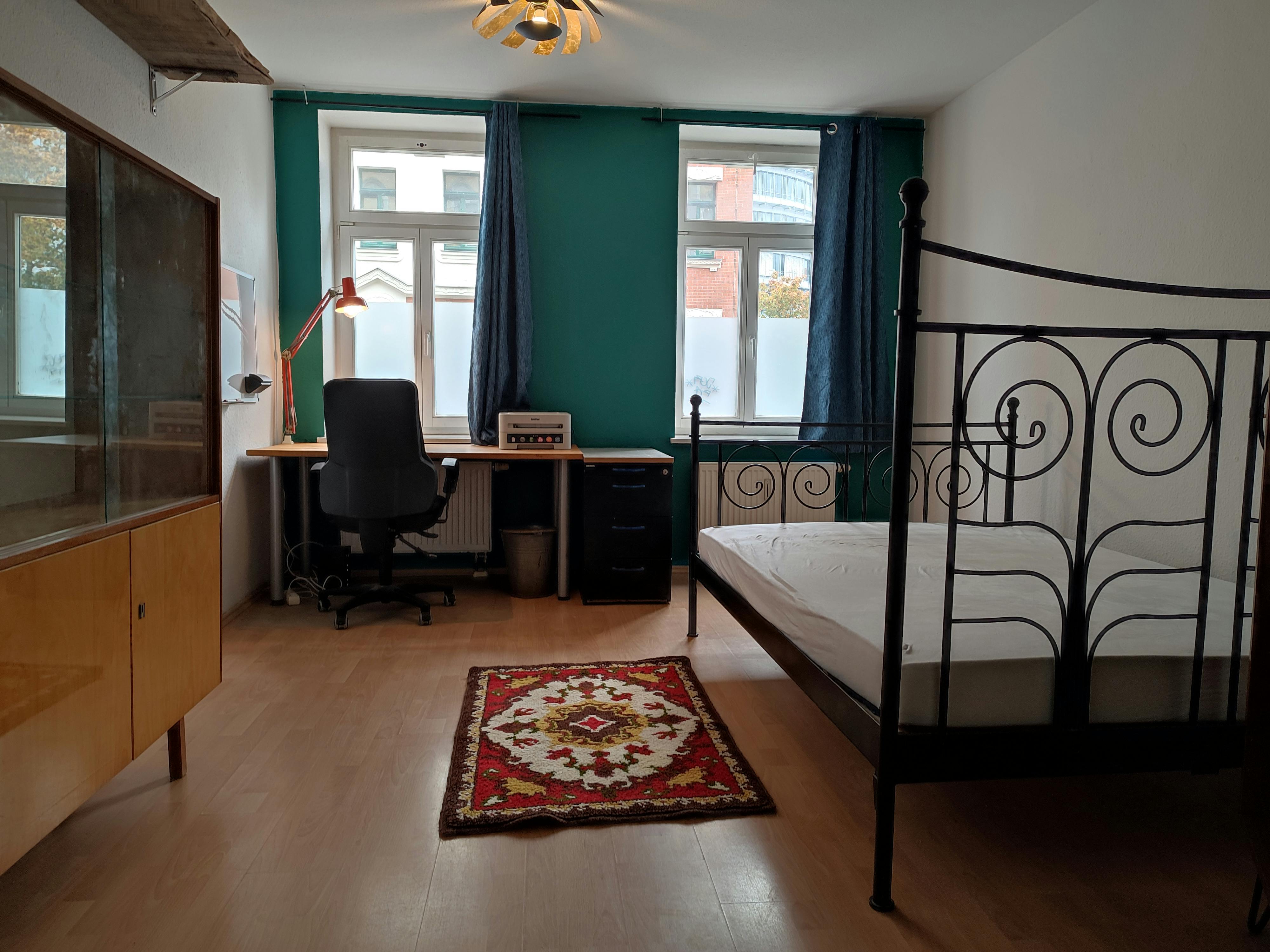 Warm, Decorated Room in Vibrant Leipzig! Greetings future flatmate! About the Apartment and Your Room: I've passionately crafted this apartment into a haven over the past two years. If a detailed decor, culinary adventures, and a refreshing drink are up your alley, then this might be your next home. Your room, a spacious 17 square meters, ensures tranquility and brightness, thanks to its position as the last house on the street and two illuminating windows. Other features: Fully furnished room. Comfortable 200x140 bed. Equipped workspace: Desk with a 27-inch screen + access to my scanner/printer. Kitchen delights: A stocked bar (kindly replenish!), induction and gas plate, beloved wok, and oven. Location: Nestled in serenity, yet a stone's throw from the pulsating "Eisenbahnstraße", our location is unbeatable. Highlights: -Eclectic restaurants, bars, and post-midnight beer spots ("spätis"). -The expat-friendly "Japanese House". -Nature retreats: "Naturbad Nordost" lake & "Rabet" park. -DuQo techno club for the party enthusiasts. -Public Transport: A mere 10-minute walk from the station "Torgauer Platz" serviced by lines 3, 7, and 8, ensuring the city's key areas are within easy reach. About Me, Your Housemate: After completing my Master's degree in Amsterdam, I started my professional career this year as a "creative technologist" working with AI in various ways. I value respect, cleanliness, and a good chat over coffee or wine. My girlfriend, a resident of our street's onset, will be our frequent guest, and vice versa. Preferred Flatmate Profile: Open-minded individuals are welcome! Preference for non-smokers. Mutual respect for cleanliness and space is key. No pets, please. Special Perks: To make your relocation smoother: Towels and bedding are ready for you, so pack light! My well-maintained bike is yours to meander through Leipzig's alleys. Contact: (hidden...