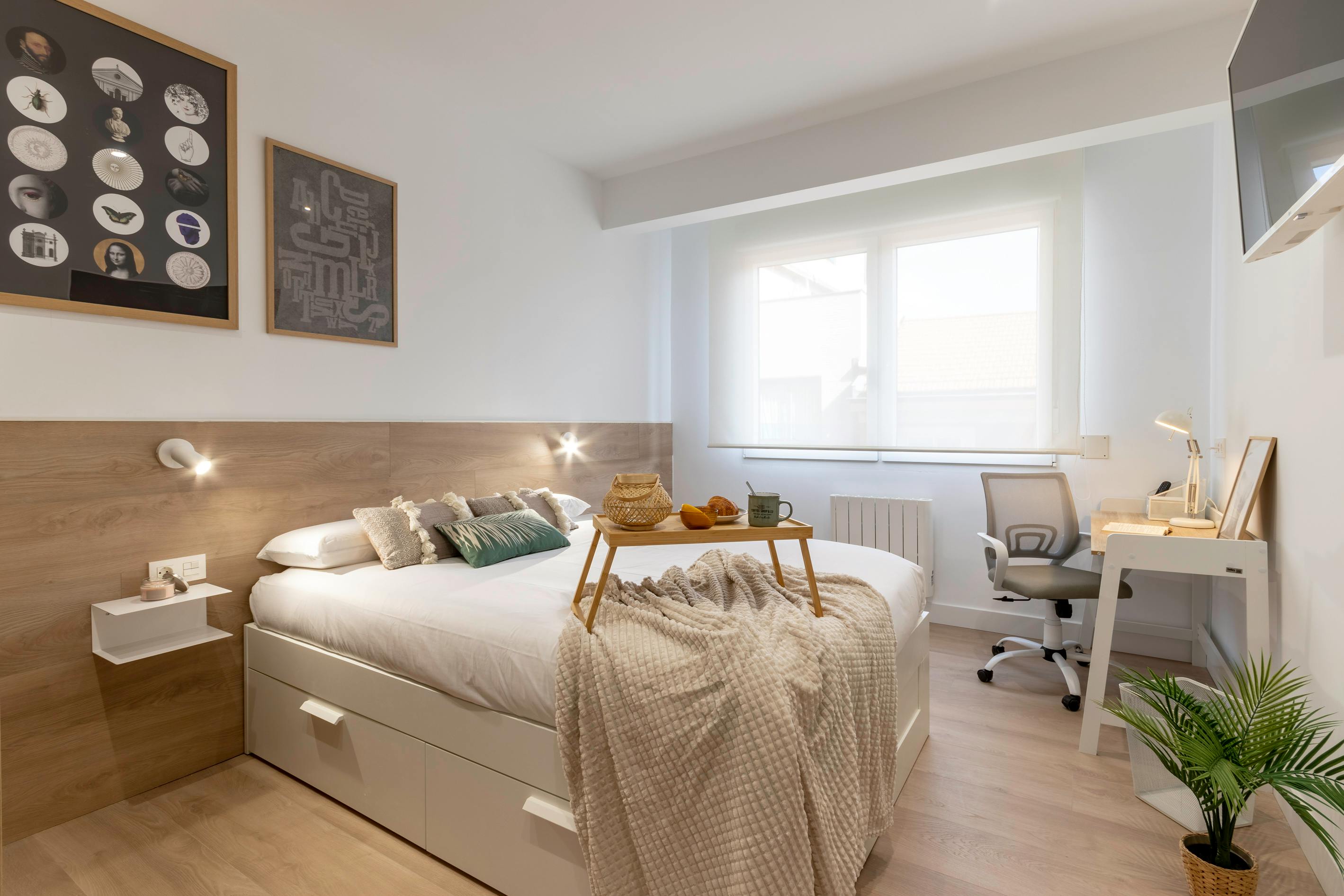 “PREMIUM” room rental, designed for people who want to live in a top-quality apartment, created with great care for all the details to ensure your comfort. This is an environment full of harmony, tranquility, and respect. Each bedroom is equipped with: - Regulation of room lighting for greater comfort - Appliqués on the headboards of the beds - Viscoelastic Mattress 140 x 200 High Range. - Viscoelastic pillows selected to offer you the best rest. - Bed frame with storage space - Complete bedding (mattress protector, fitted sheet, duvet cover, duvet) - Work table 125 x 80 - Work chair - Power outlet and cable internet outlet. - Study lamp -1.50 dressing room with drawers, baskets, shelves, and coat rack -Drawers at the bottom of the bed -42-inch smartv television with cable internet -High insulation Climalit windows with self-venting and tilt-and-turn windows -Efficient electric heating -Lock -Fiber optic Internet The common zones have: Bathrooms: -2 full bathrooms with electric heating. -Ambient Led lighting Kitchen: -Two refrigerators -Two Sinks -Dishwasher -Washing machine -Dryer -Complete tableware -Cookware -Coffee maker, toaster Weekly cleaning of common areas is included in the rent. Bills are included up to 50€. REQUIREMENTS: - Deposit of €700 - Demonstrable income - It is not allowed to smoke - Couples are not allowed Please be aware that HousingAnywhere is an online booking platform. Therefore exchanging contact details and offering viewings is not possible. If you would like to reserve this accommodation, send me a booking request or a message and please mention your age and occupation. I look forward to meeting you...