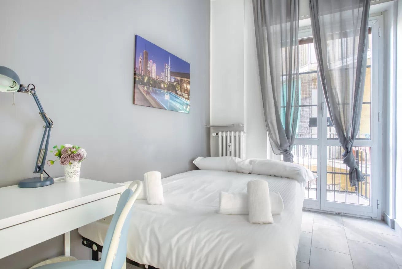 Spacious 3-Bedroom Apartment with Balconies in Zona Zara, Milan Welcome to our cozy and spacious 3-bedroom apartment ideally located in the vibrant Zona Zara neighborhood in Milan. This charming apartment is perfect for families or groups of up to 7 guests looking to explore the city while enjoying comfortable living spaces. Key Features: 3 bedrooms First bedroom with a double bed Second bedroom with two single beds Third bedroom with a single king-size bed 2 bathrooms Comfy living room with a flat-screen TV Fully equipped kitchen with all essential appliances and a small TV Dining area suitable for up to 5 guests 2 delightful balconies Desk spaces with chairs available Location: The apartment is just a 2-minute walk to Istria subway station, providing convenient access to the city's attractions. You can reach Villa Mirabello in a 6-minute walk and enjoy an 18-minute subway ride to Sforzesco Castle and Duomo di Milano. The neighborhood offers a variety of shops, restaurants, and cafes to explore. Access & Property Details: Guests will have access to the entire apartment. Please note that there is no free parking available at this property, but a blue line nearby is available for parking at a cost of €1-2 per hour. The property is located on the third floor and is equipped with an elevator. However, there are six flights of stairs to the property. Check-in Information: Guests can check in on their own with a self-check-in system. Essentials Included: We provide essentials such as linens, towels, and Wi-Fi to ensure a comfortable stay. Explore Zona Zara: Zona Zara is a beautiful neighborhood in the heart of Milan, offering a vibrant atmosphere with shops, restaurants, and outdoor attractions. The neighborhood is well-connected to public transportation, making it easy to explore the city's cultural and entertainment offerings. Transportation: There is no free parking available at this property, but a blue line nearby is available for parking at a cost of €1-2 per hour. The nearest bus stop is Via Abbazia P.le Istria, just a short 1-minute walk away. Istria subway station is a convenient 2-minute walk from the apartment. Nearest Airport: Milan Linate Airport is a 33-minute drive from the property. Please Note: Guests are required to pay a city tax in accordance with local government regulations. This city tax varies between cities and is not included in the accommodation fare and cleaning fee. Energy Usage: In light of the current situation, we kindly ask our guests to consume electricity and gas mindfully. Please note we will add an additional charge for excessive energy usage. Feel free to let us know if you have any further requests or if you need any adjustments to the description. We're here to assist you! House rules: No smoking, or parties. Dispose of rubbish properly. Keep the property clean. While appreciated, washing up and stripping beds at check-out are not mandatory. Quiet hours are 10 PM to 9 AM. Please secure all windows and doors when leaving. Be careful with keys; guests cover costs for lost keys or locksmith calls. Follow Italian recycling rules and pay city tax before check-in. Central heating operates on a set schedule: 6 AM-9 AM, 12 PM-2 PM, 8 PM-11 PM. Max thermostat temperature is 19°C. Avoid using multiple appliances simultaneously to prevent power outages. Please, consider the accommodation surface area shown in the listing is not accurate and it is just an indication of the size of the apartment. . Please be aware that HousingAnywhere is an online booking platform. Therefore exchanging contact details and offering viewings is not possible. If you would like to reserve this accommodation, send me a booking request or a message and please mention your age and occupation. I look forward to meeting you! Please keep in mind at the check in the tenant will be asked to pay the city tax in addition to the costs specified in the payment overvie...