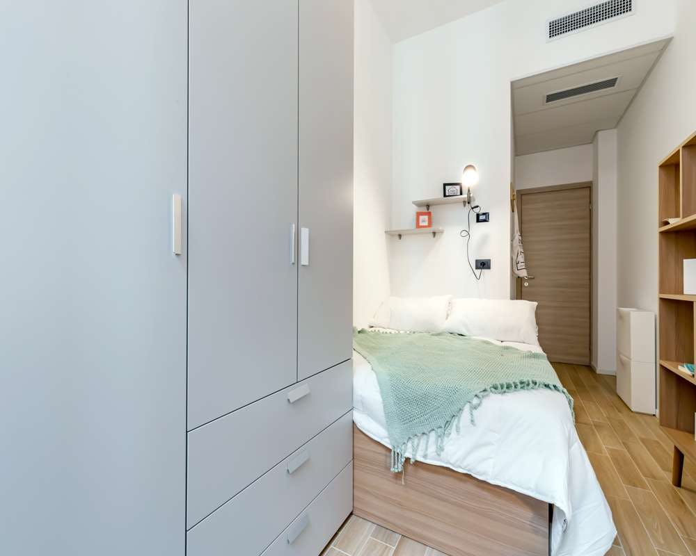 Single room in a shared apartment, composed by 7 bedrooms and 3 bathrooms. Of about 14 sqm with a one and a half bed and a work station. With air conditioning, bike parking, wifi, dishwasher, washing machine. Energy class: A, IPE 102.05 Kwh/Sqm year. Please be aware that HousingAnywhere is an online booking platform. Therefore exchanging contact details and offering viewings is not possible. If you would like to reserve this accommodation, send me a booking request or a message and please mention your age and occupation. I look forward to talking to you! CONTRACT Please, note that to all our listings we apply fortnightly contracts. This means that If you check-in during the first half of the month, you will be charged for the full month. If you check-in during the second half of the month, you will only be charged for the second half. The second half of the month starts on the 16th. If you check-out during the first half of the month, you will only pay until the 15th of that month. If you check-out during the second half of the month, you will be charged the full month....