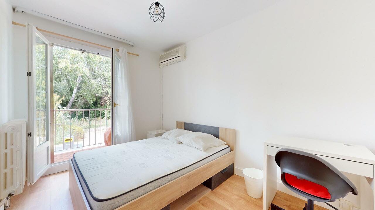 MAISON 5 PIÈCES AVEC TERRASSE Au 48 Chemin De Massillargues (Avignon, 84000), venez découvrir cette colocation de 5 chambres de 110 m2. LA CHAMBRE Cette chambre dispose d'un lit double, une table de chevet, un bureau avec une chaise et un placard mural. Le plus : Cette chambre a un accès direct sur le balcon ! LES ESPACES COMMUNS Cette maison de 5 pièces propose un salon équipé de deux canapés ainsi que d'une télévision, quatre chambres, une cuisine avec un four, un lave-vaisselle, un micro-ondes ainsi qu'un réfrigérateur américain et deux salles de bains. Un chauffage fonctionnant au gaz est mis en place. Cette maison est aussi équipée de la fibre, pour une connexion internet haut débit. LES EXTÉRIEURS Profitez d'espace extérieur pour gagner en confort avec un jardin et une terrasse. LE QUARTIER Il y a l'université Avignon Université à moins de 10 minutes en voiture. Côté transports en commun, on trouve 11 lignes de bus à moins de 10 minutes à pied. L'autoroute A7 et les nationales N7 et N129 sont accessibles à moins de 10 km. Il y a des restaurants, des commerces, des boulangeries, deux supermarchés, des épiceries et deux bureaux de poste à quelques minutes...