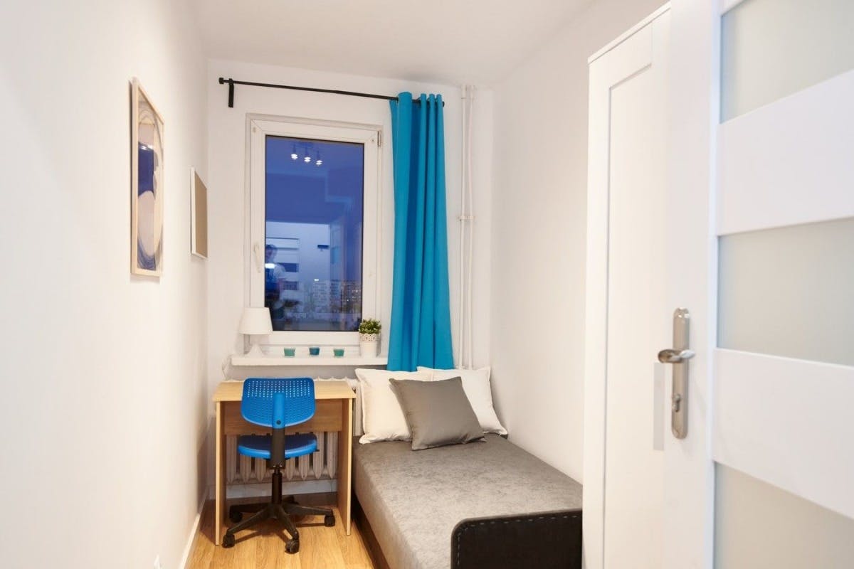 🏡 Cozy Single Room in Stokłosy – Ursynów, Warsaw Welcome to your comfortable single-room retreat in the lively Stokłosy area of Ursynów! Perfect for students or professionals, this inviting space includes a single bed, desk with chair, and a spacious closet, providing both comfort and functionality for study, work, or relaxation. ✨ The apartment comprises five rooms, creating a friendly community atmosphere while maintaining privacy for each resident. You’ll have access to a shared bathroom with a shower and a fully equipped kitchen featuring a microwave and washing machine — everything you need for easy everyday living. 🌳 Prime Location & Neighborhood Charm Set in the vibrant Ursynów district, Stokłosy combines modern city living with a welcoming neighborhood feel. Enjoy the convenience of local shops, cafés, and green spaces just around the corner. With excellent public transport connections, exploring Warsaw and its attractions couldn’t be easier....