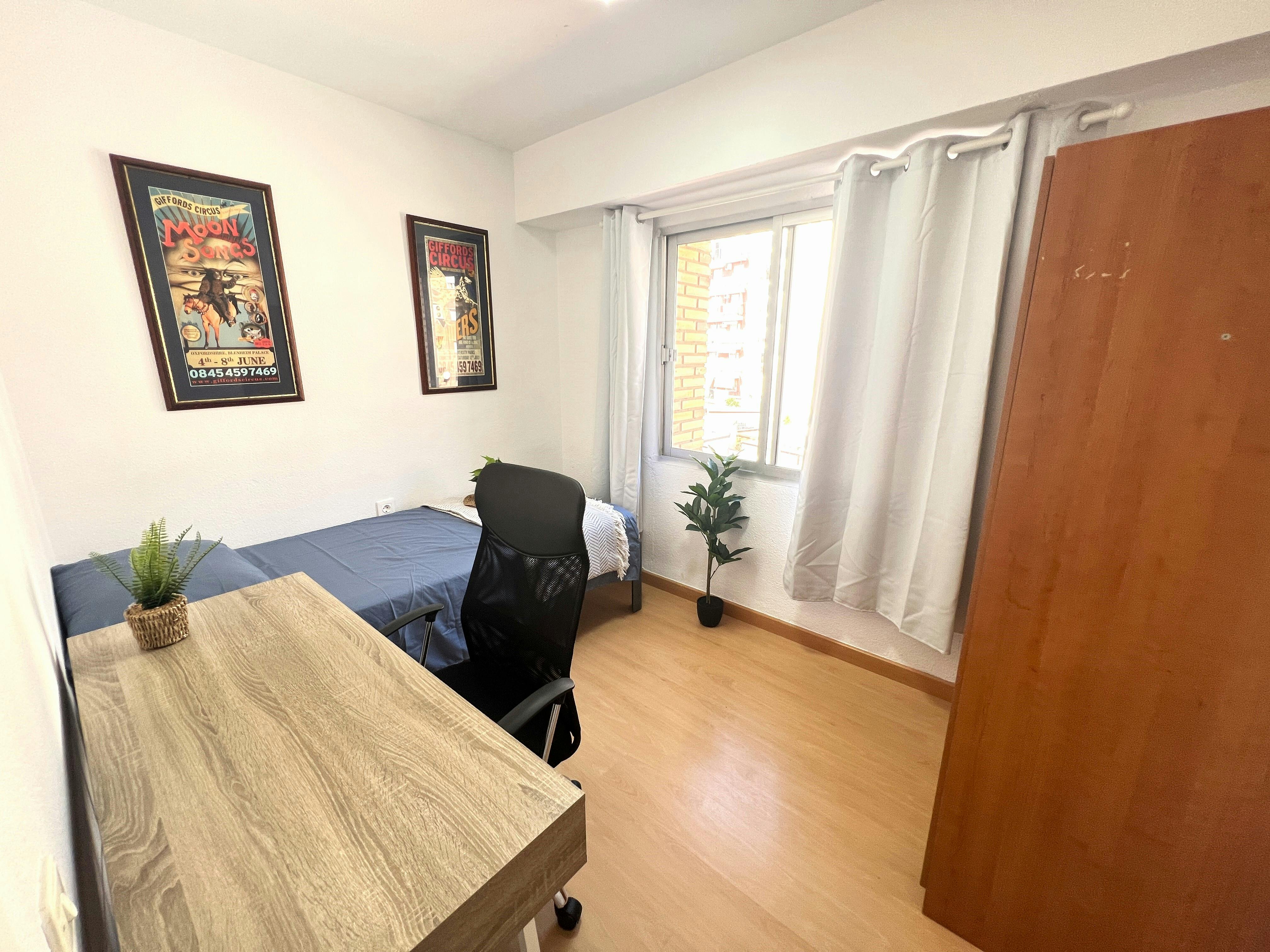 ROOM: Individual room in Blasco Ibañez. It is a very good option if you are a student or young worker and you want to spend some time in the beautiful city of Valencia. It is a fully equipped and furnished room: - Bed 90x190cm - Wardrobe - Desk with lamp and chair - Bedside table - Window with exterior view - Lock for your privacy APARTMENT: The flat is 95m2 and has 3 bedrooms and 1 bathrooms. The common areas are really nice, with a living room with sofa and a fully equipped kitchen with: - Ceramic hob - Refrigerator - Oven - Microwave oven - Washing machine - Crockery and cutlery NEIGHBOURHOOD: Blasco Ibañez is one of the favourite areas for students who come to spend some time in Valencia. This area is home to several university buildings and is very well connected to the city centre, the UPV and the University of Valencia, as well as the beach! With all kinds of restaurants, bars, concert venues and much more you are guaranteed to enjoy this area. EXPENSES: The rental price includes internet and a weekly cleaning of the common areas. The costs of utilities are as follows: -Water: 10€/month -Gas: 15€/month -Electricity: 25€/month, if any month the consumption is more than this, the difference will be paid separately. In this case, the expenses are shared equal parts between the tenants. CLEANING SERVICE: We offer a free cleaning service once a week of the communal areas. It is the tenant's responsibility to keep the flat clean, tidy and in good condition. Our cleaning service is mainly to help you with the cleaning, but it is important to keep everything clean. Cleaning products must be provided by the tenants. You can find a list of the necessary cleaning products in the flat. BEDROOM CLOTHING: For a hygienic reason, we do not provide bedding, pillow, duvet and duvet cover. CHECK IN AND CHECK OUT: Check in will take place at the office. Once your booking is confirmed, you will receive details of how to get to the office, but it is within easy reach of the airport. We will meet you here to complete the payments, sign the rental contract and provide you with a set of keys to your new home. Check-in hours will be from 16:00 to 20:00. If you arrive in Valencia earlier you can leave your luggage in my office in the meantime. If you arrive later than 8:00PM we will leave the keys at a 24H point, where you can pick them up. Check out will be at the latest on the last day of the rental contract at 11:00AM. If your flight is after this time, you can leave your luggage here at the office free of charge...