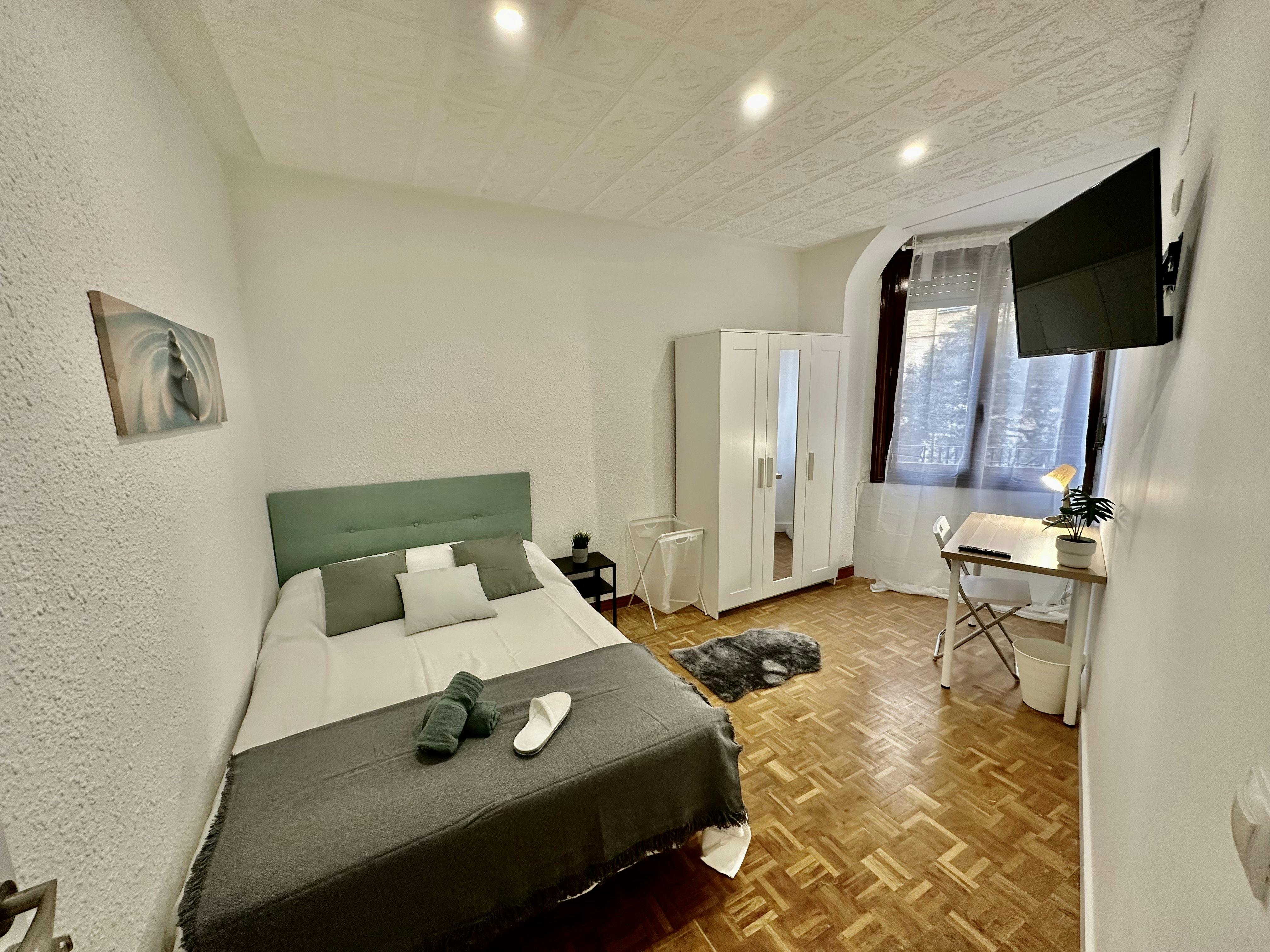 Welcome to well-appointed 10-square-meter bedroom that offers comfort, convenience, and a range of amenities to enhance your stay. This room features a cozy 135cm bed, providing a perfect spot for rest and relaxation. A generously-sized closet ensures ample storage space for your belongings, keeping your living area organized and tidy. A dedicated desk provides a versatile workspace for work, study, or personal projects. In addition to these amenities, you'll also find a TV in the room, allowing you to unwind and enjoy entertainment from the comfort of your own space. This bedroom is nestled within a well-designed 120-square-meter apartment, which includes a total of six bedrooms. The shared kitchen is fully equipped, making meal preparation convenient. The comfortable living room is the perfect spot for relaxation and socialization, and there are two bathrooms. Located on the second floor with the added convenience of an elevator, accessibility is not a problem. The apartment is situated in a university area, ensuring you have easy access to educational institutions and a vibrant community. It's a prime location for students, academics, and those looking to engage with the university environment. Fortnightly cleaning of common areas and utilities up to 50€ are included in the rental price. Please note that bookings are done by semesters of 5 months: from September to January or from February to June. If the semester has already started the minimum stay could shorter. Please be aware that HousingAnywhere is an online booking platform. Therefore exchanging contact details and offering viewings is not possible. If you would like to reserve this accommodation, send me a booking request or a message and please mention your age and occupation. I look forward to meeting you...