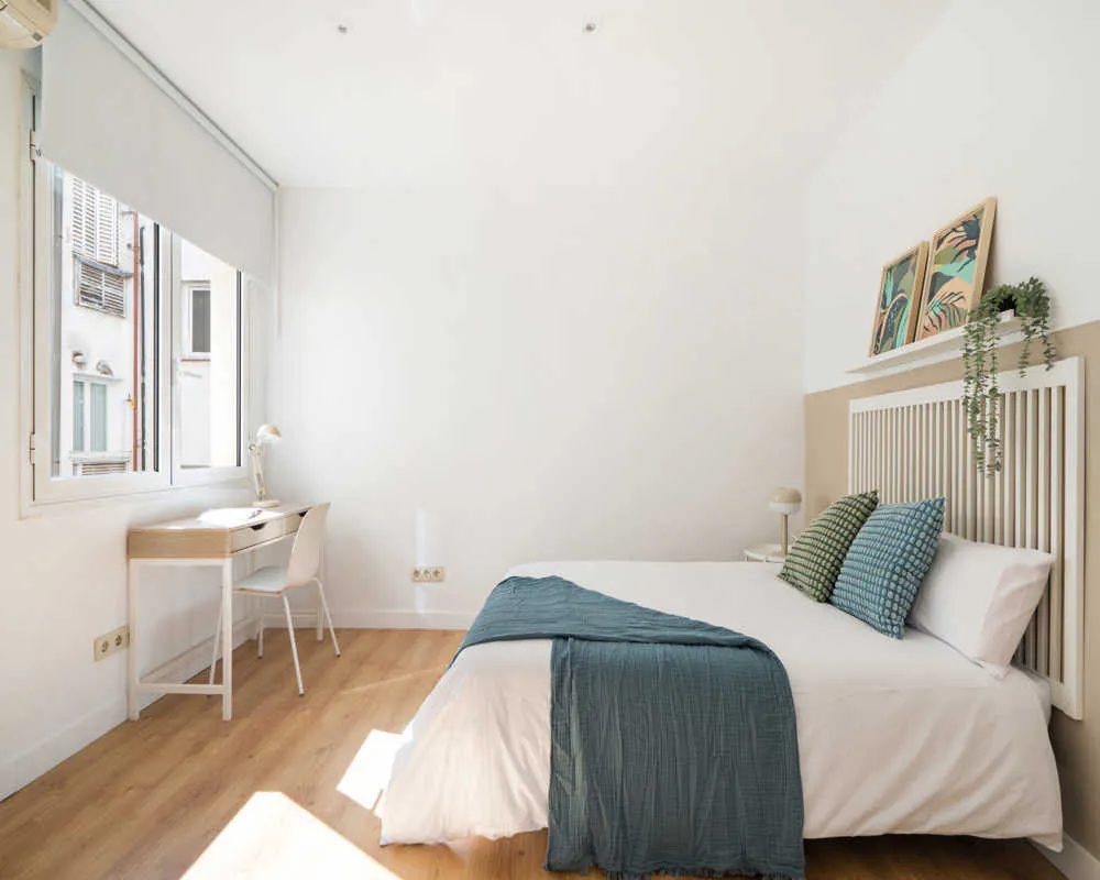 Spacious Room in the lively *Barrio Salamanca* , ideal for students and young professionals looking for a comfortable living space. This room is 13.8 square meters, providing ample space for relaxation and study. The shared flat features a total of 5 bathrooms and 8 rooms, located on the 6th floor for a serene atmosphere. Enjoy modern conveniences such as a *dishwasher* , *washing machine* , *television* , *WiFi* , and a *microwave* to enhance your daily living experience. The building includes practical amenities like an *elevator* and a *kitchen bar* , fostering a sense of community among residents. Nearby, you can find essential services such as *Comparador-Legaltech* (1 min walk) for study and work, and *Alcalá - Goya* (1 min walk) for transportation, making commuting easy. Join a friendly community of like-minded individuals in this vibrant area. Perfect for those seeking a supportive environment. Don't miss this opportunity! Current tenants: 1: 23, Female, Student 2: 21, Female, Student 3: 21, Female, Student 5: 22, Male, Student 6: 20, Female, Student 7: 20, Female, Student 8: 19, Male, Student Please be aware that HousingAnywhere is an online booking platform. Therefore exchanging contact details and offering viewings is not possible. If you would like to reserve this accommodation, send me a booking request or a message and please mention your age and occupation. I look forward to talking to you! CONTRACT Please, note that to all our listings we apply fortnightly contracts. This means that If you check-in during the first half of the month, you will be charged for the full month. If you check-in during the second half of the month, you will only be charged for the second half. The second half of the month starts on the 16th. If you check-out during the first half of the month, you will only pay until the 15th of that month. If you check-out during the second half of the month, you will be charged the full month. Tenants can establish legal residency using the accommodation's address....