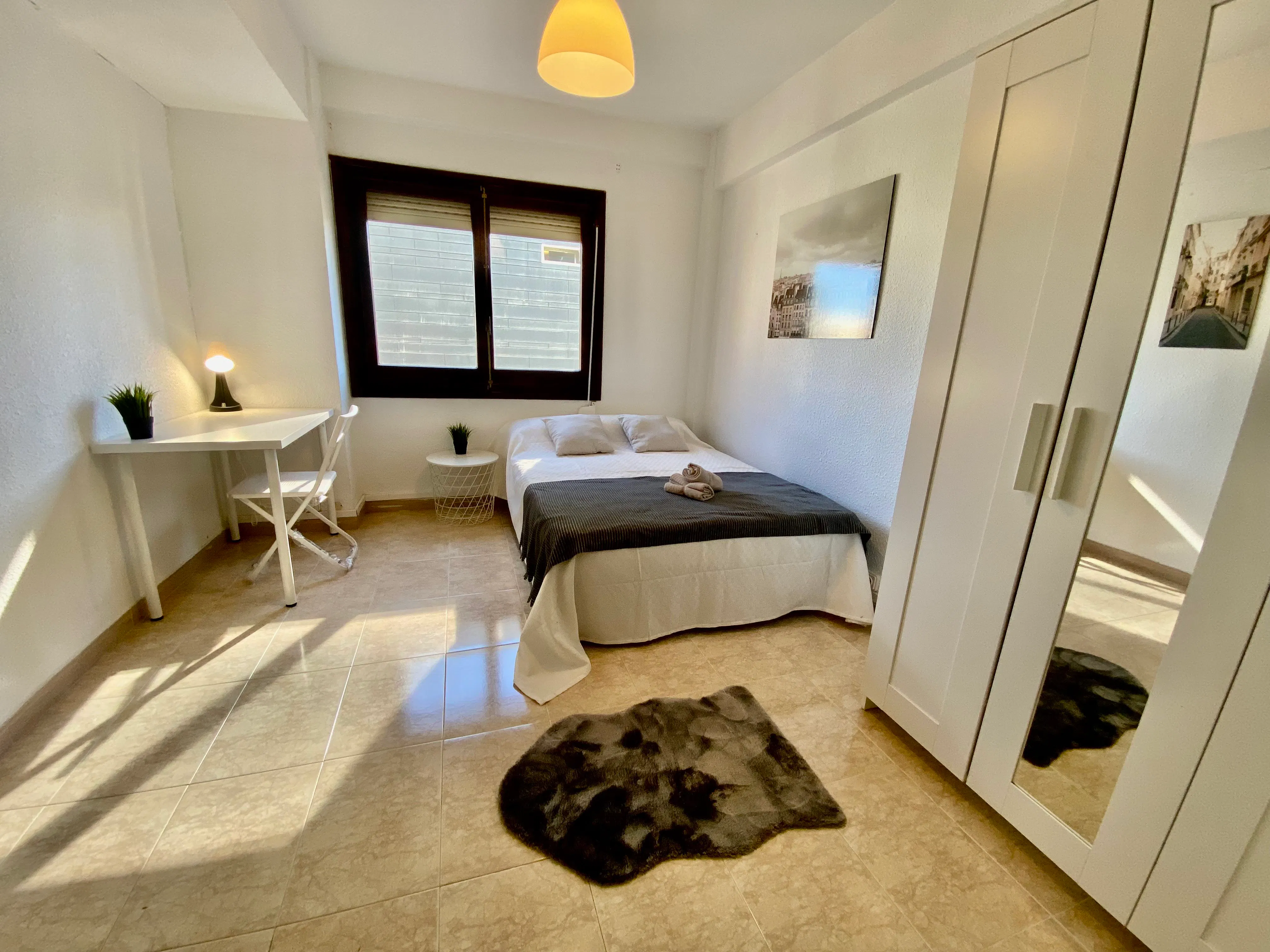 Welcome to a comfortable 10m2 room featuring a large 135cm bed, a large wardrobe and a desk. This room is situated within a spacious 120-square-meter apartment, which offers a dynamic and inviting living experience. The apartment comprises a total of six bedrooms, providing a diverse mix of roommates and opportunities for socializing. It includes a well-appointed kitchen where you can prepare meals and enjoy shared culinary experiences. A small balcony next to the kitchen offers an additional area for relaxation or social gatherings. There are two bathrooms in the apartment. The apartment is located on the 6th flood in a building with an elevator. The neighborhood in the bustling downtown area, providing easy access to the city's vibrant scene, cultural offerings, and local attractions. Fortnightly cleaning of common areas and utilities up to 50€ are included in the rental price. Please note that bookings are done by semesters of 5 months: from September to January or from February to June. If the semester has already started the minimum stay could shorter. Please be aware that HousingAnywhere is an online booking platform. Therefore exchanging contact details and offering viewings is not possible. If you would like to reserve this accommodation, send me a booking request or a message and please mention your age and occupation. I look forward to meeting you...