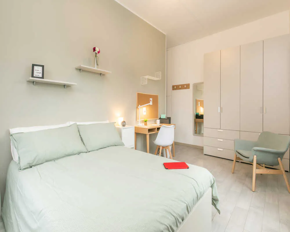 Single room in a shared apartment, composed by 4 bedrooms and 2 bathrooms. Of about 21 sqm with a one and a half bed and a work station. With wifi, dishwasher, washing machine. Energy class: G, IPE 202.05 Kwh/Sqm year. Current tenants: 1: 21, Female, Student 3: 21, Female, Student 4: 24, Female, Student Please be aware that HousingAnywhere is an online booking platform. Therefore exchanging contact details and offering viewings is not possible. If you would like to reserve this accommodation, send me a booking request or a message and please mention your age and occupation. I look forward to talking to you! CONTRACT Please, note that to all our listings we apply fortnightly contracts. This means that If you check-in during the first half of the month, you will be charged for the full month. If you check-in during the second half of the month, you will only be charged for the second half. The second half of the month starts on the 16th. If you check-out during the first half of the month, you will only pay until the 15th of that month. If you check-out during the second half of the month, you will be charged the full month....