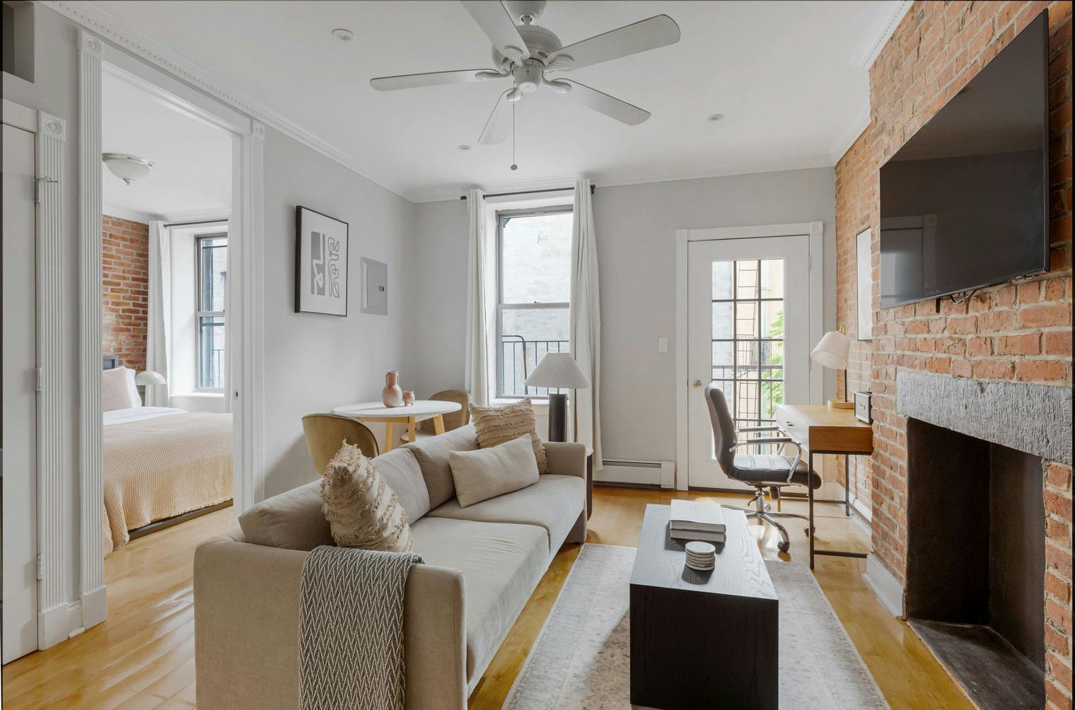 Please, note that the minimum stay for this accommodation is 32 days. You’ll love this pretty Alphabet City furnished two bedroom apartment with its modern decor, fully equipped kitchen, and cheery living room. Ideally located, you’re close to all the best that New York has to offer! (ID #NYC1212) Designed with you in mind Gorgeous furniture, fully equipped kitchen, smart TV, and a premium wireless speaker are just a few of the amenities you’ll find inside this two bedroom apartment. Ideally located in New York, you’ll find a lot to love outside as well. When you’re ready to relax, you’ll be happy to discover every bedroom comes with superior quality mattresses. We handle everything so you can simply show up and start living. This apartment also offers in-apartment laundry. Sleeping arrangements Queen Bed, 63in/160cm Queen Bed, 63in/160cm Amenities Building amenities unique to this two bedroom apartment include an on-site: - Dryer - Washing machine - Pets allowed Arrival and ongoing support Full Maintenance and Technical Support / cleaning requests at a click of a button. Other things to note This apartment has flexible lease options, allowing you to book it for one month, a year, or more. Pets are welcome, though weight limits and breed restrictions apply and may incur fees. Please keep in mind that this is a walk up building. Completion of the Background check via a link is mandatory after the booking confirmation. All occupants, and anyone booking on an occupant's behalf, will be subject to a background check, which will include a criminal and credit history to the extent permitted by law. United States citizens, U.S. permanent residents, and non U.S. citizens with work visas must provide a social security number to complete the background check. Should guests not meet requirements or decide not to complete these screenings, the reservation must be cancelled by guests. In case of students, proof of University enrollment and a parents screening are mandatory for the confirmation of a booking...