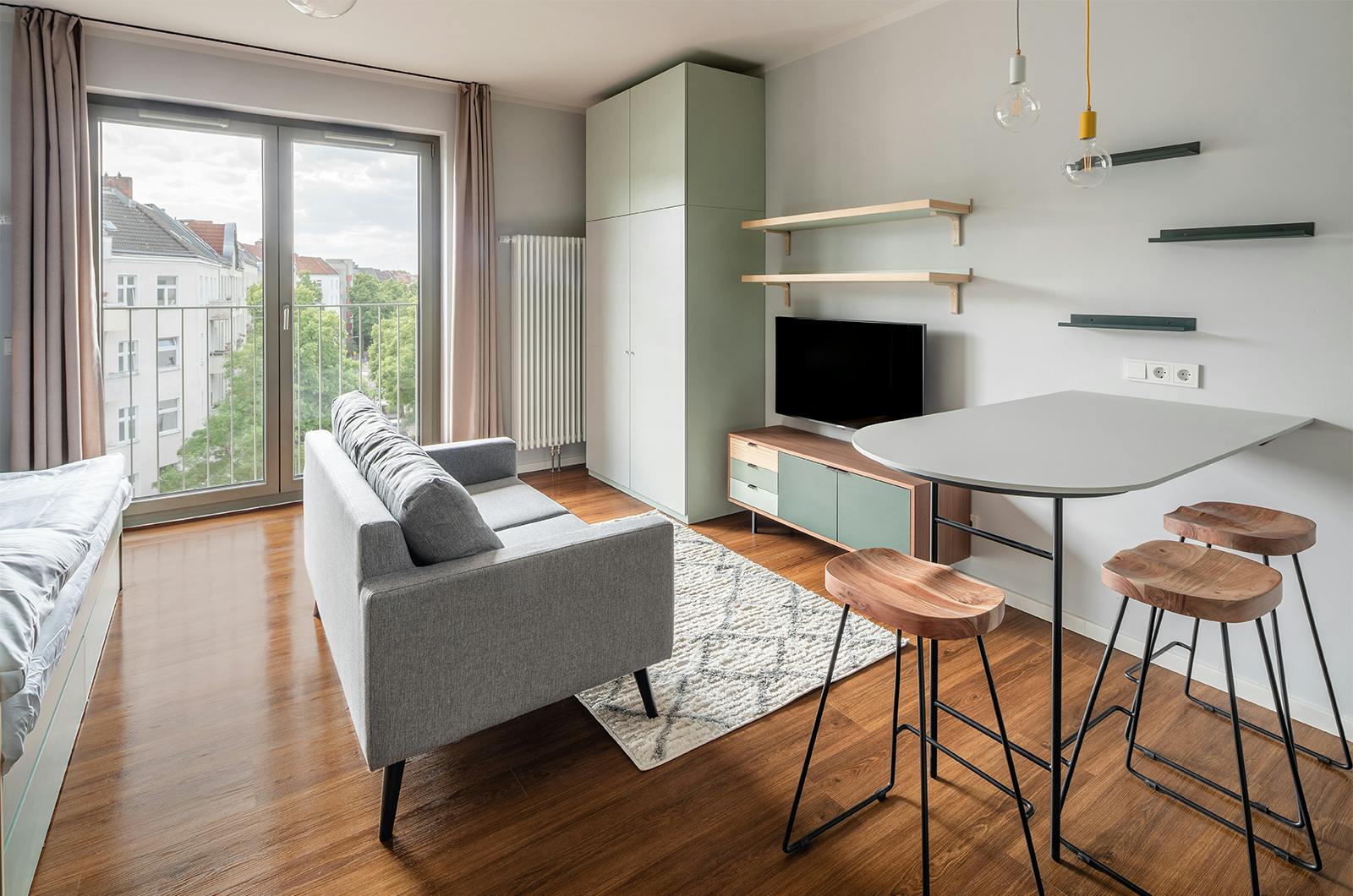 Our Apartments are fully equipped and furnished apartments between 27-67m2. Each type of apartment has been individually designed and offers high quality. Our commitment is to provide a high standard of living comfort, emphasizing aesthetics and digitization, as well as respecting the privacy of our tenants. With a balanced mix of natural materials and selected vintage pieces, we combine simplicity with a warm aesthetic. Here, it's easy to recharge your batteries and clear your head for the next day. Discover a comfortable & furnished flat for your stay at our Apartment. With apartment sizes ranges from 31 to 37 square meters, tailor-made and optimized to the floor plan, your feeling of well-being comes out big. With a cozy open living and sleeping area as well as an open kitchen, our Apartments invite you to feel at home immediately. Take one with a balcony for relaxing with the 1st coffee in your hand to start an exciting new day or a last sip of wine at sunset and complete your living experience here with us. *Prices may vary depending on floor level, on length of stay and rental period. After the lease agreement expires, new contracts for extending the stay are possible. For tenants staying 7-12 months, we will require 2,3 month’s all-in rent as a deposit. All of this is also shown in detail within our digital booking process. Take a relaxed approach to deposit security. We have partnered with Garentii to offer a quick and comfortable solution. For a small fee, you can skip the deposit and save on upfront costs. Ready to say goodbye to deposits? IMPORTANT: To complete your booking, you must transfer the deposit or enrol with Garentii deposit insurance. Failing to do so, your application will not be processed. You want to book directly your preferred apartment or take a look at our other apartment categories? Our booking process is fully digital and as comfortable as a hotel booking. In Neukölln, we offer Single Studio and Apartments with up to 2 bedrooms for smaller families. • Fully furnished & equipped living units • Rentable from 7 month • Digital services (online application and lease agreement, damage reporting, daily display of consumption data, tenant support) • Registration possible • Housekeeping on call Life in Neukölln! Your new home away from home is located right in the middle of popular Neukölln, just a few minutes walk from the Sonnenallee S-Bahn station and 2 minutes by car to Berlin’s new city highway. Whether to the Airport BER, Tesla Grünheide or the city centre, our apartments in Neukölln are ideally located with many restaurants, cafes and galleries in the immediate neighborhood. As an aspiring trendy district, Neukölln is especially known for its multicultural flair and is characterized by a large art and cultural scene. Sonnenallee and the nearby Karl-Marx-Strasse offer a wide variety of leisure activities and shopping for daily needs. _______________________________________________________________ What happens after your booking is completed on HousingAnywhere? Good to know: After your booking has been confirmed on HousingAnywhere, you have to finalize your reservation in our system. The following steps have to be completed: 1. You will receive a link to our website by e-mail. 2. On our website, you have to select the apartment type you have booked on HousingAnywhere. 3. As the next step, you will receive password-protected access to our app where you can upload your enrolment certificate, as well as a copy of your ID card or passport, and confirm the contract. 4. Afterward, we will check your details, and if everything fits you will receive an automatic e-mail with the payment request of the deposit and our one-off handling fee (this payment differs from the HousingAnywhere booking fee!). 5. As soon as there are no more pending payments (within the next 5 business days) and we have received the money, we will finalize the booking and you will receive a final confirmation e-mail. 6. Please note that the booking through our system should be completed no later than 7 days after booking on HousingAnywhere. After 7 days, the room is no longer reserved for you and can be booked by others. Just before the semester starts, reservations can only be held for 2 days. In this case, a refund of the costs paid so far is not guaranteed. Don’t worry, if you need any help, you are always welcome to contact us...