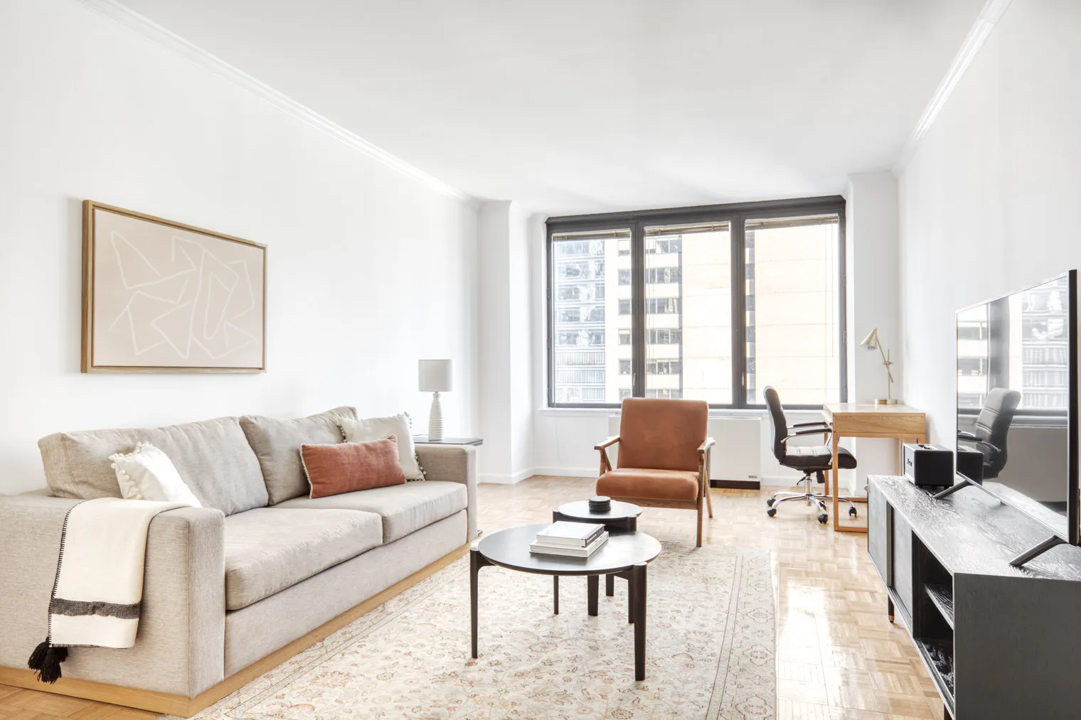 Please, note that the minimum stay for this accommodation is 32 days. You’ll love this lovely Midtown East furnished two bedroom apartment with its modern decor, fully equipped kitchen, and comfortable living room with great high floor views. Ideally located, you’re close to all the best that New York has to offer! (ID #NYC516) Designed with you in mind Gorgeous furniture, fully equipped kitchen, smart TV, and a premium wireless speaker are just a few of the amenities you’ll find inside this two bedroom apartment. Ideally located in New York, you’ll find a lot to love outside as well. When you’re ready to relax, you’ll be happy to discover every bedroom comes with superior quality mattresses. We handle everything so you can simply show up and start living. Sleeping arrangements King Bed, 70.8in/180cm Queen Bed, 63in/160cm Amenities Building amenities unique to this two bedroom apartment include an on-site: - Doorman - Dryer in building - Elevator - Swimming pool - Washing machine in building Arrival and ongoing support Full Maintenance and Technical Support / cleaning requests at a click of a button. Ideally Located This furnished apartment is located in Midtown East. This bustling neighborhood is home to NYC landmarks like the Empire State Building, the United Nations' head(hidden), and Grand Central Station. Midtown East is also home to a thriving dining scene, with everything from humble food carts selling hotdogs to white-tablecloth restaurants with multiple Michelin stars. There are also many cultural attractions, including the Museum of Modern Art, the lovely Japan Society, the historic Morgan Library, and more. Midtown East is also home to some incredible shopping, from the international flagship stores along Fifth Avenue to Bloomingdale's, one of the city's best-loved department stores. Other things to note Building amenities may have an extra cost. This apartment has flexible lease options, allowing you to book it for one month, a year, or more. Completion of the Background check via a link is mandatory after the booking confirmation. All occupants, and anyone booking on an occupant's behalf, will be subject to a background check, which will include a criminal and credit history to the extent permitted by law. United States citizens, U.S. permanent residents, and non U.S. citizens with work visas must provide a social security number to complete the background check. Should guests not meet requirements or decide not to complete these screenings, the reservation must be cancelled by guests. In case of students, proof of University enrollment and a parents screening are mandatory for the confirmation of a booking...