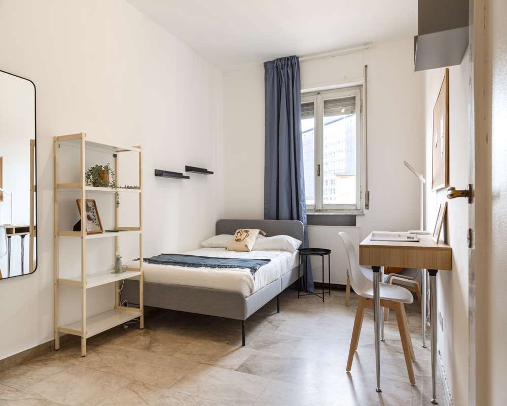 Single room in a shared apartment, composed by 6 bedrooms and 2 bathrooms. Of about 16 sqm with a one and a half bed and a work station. With wifi, concierge services, dishwasher, washing machine. Energy class: G, IPE 225.30 Kwh/Sqm year. Current tenants: 2: 21, Female, Student 3: 24, Male, Student 4: 19, Female, Student 5: 22, Male, Student 6: 22, Female, Student Please be aware that HousingAnywhere is an online booking platform. Therefore exchanging contact details and offering viewings is not possible. If you would like to reserve this accommodation, send me a booking request or a message and please mention your age and occupation. I look forward to talking to you! CONTRACT Please, note that to all our listings we apply fortnightly contracts. This means that If you check-in during the first half of the month, you will be charged for the full month. If you check-in during the second half of the month, you will only be charged for the second half. The second half of the month starts on the 16th. If you check-out during the first half of the month, you will only pay until the 15th of that month. If you check-out during the second half of the month, you will be charged the full month....