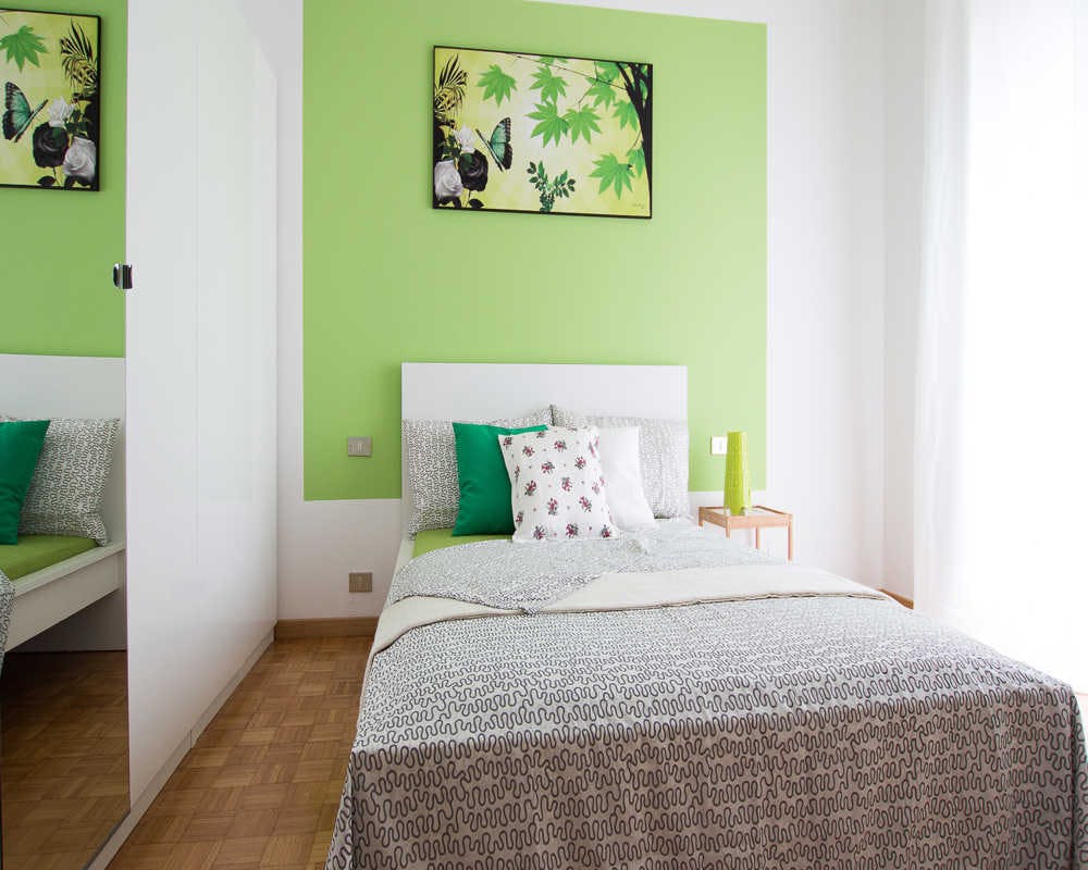 Located in the San Siro / Lampugnano / Bonola area, this bright room offers convenient access to nearby transport and local amenities. Comfortable *Room* with a queen-size bed, 17.76 m2 of space and balcony access. The apartment includes shared bathrooms (2) and reliable *WiFi* , heating and a *television* for your comfort. The building features an *elevator* and the flat provides a *washing machine* , making daily life easier. Ideal for students and young professionals seeking a well-equipped, social flat in Milan with private sleeping space and shared facilities. Limited rooms available — enquire today! Current tenants: 1: 33, Male, Student 4: 22, Male, Worker Please be aware that HousingAnywhere is an online booking platform. Therefore exchanging contact details and offering viewings is not possible. If you would like to reserve this accommodation, send me a booking request or a message and please mention your age and occupation. I look forward to talking to you! CONTRACT Please, note that to all our listings we apply fortnightly contracts. This means that If you check-in during the first half of the month, you will be charged for the full month. If you check-in during the second half of the month, you will only be charged for the second half. The second half of the month starts on the 16th. If you check-out during the first half of the month, you will only pay until the 15th of that month. If you check-out during the second half of the month, you will be charged the full month....