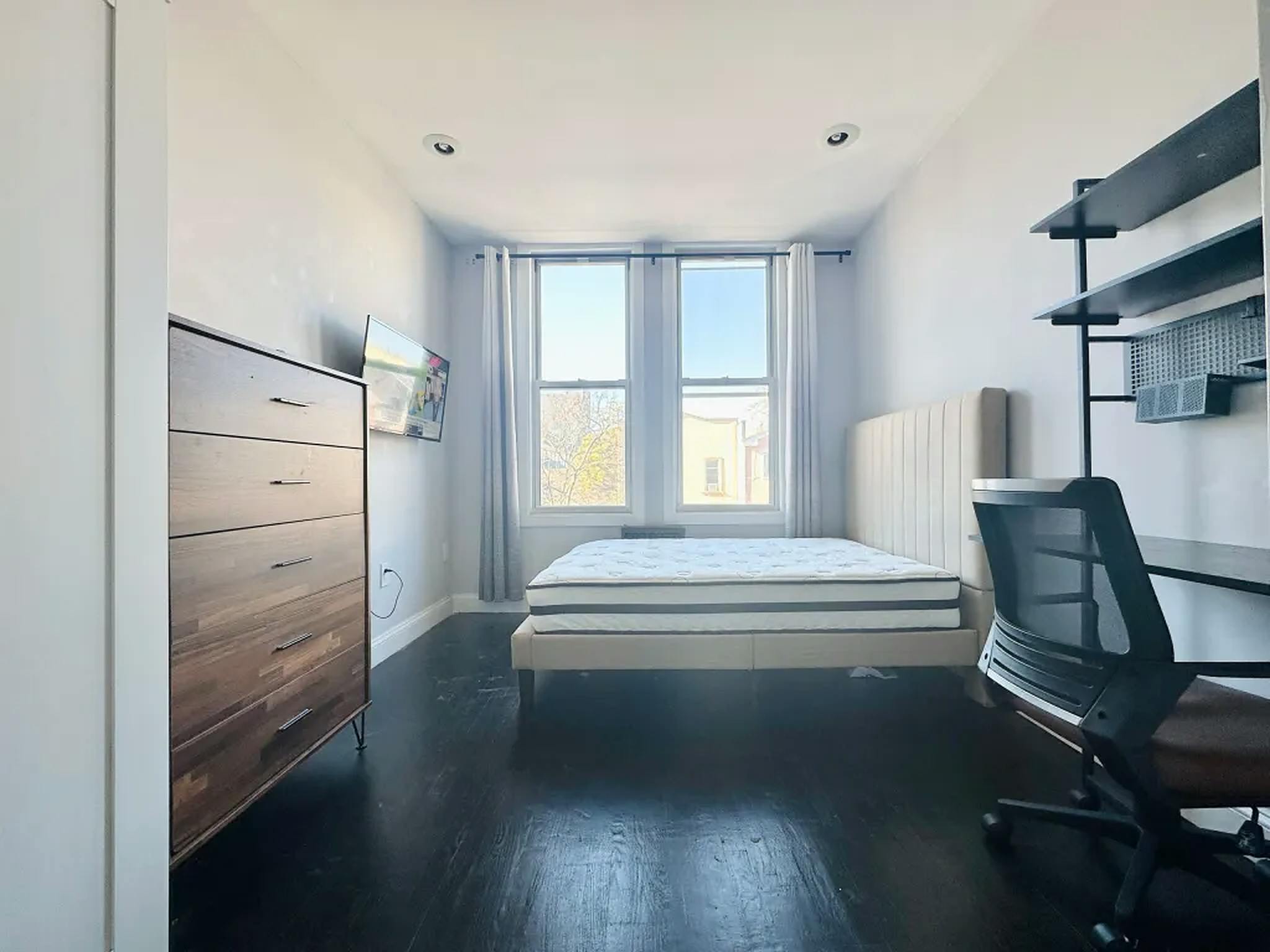 - Furnished room, 160 sq ft, tons of light, in a 4 bedroom, recently gut renovated apartment. - Trains: 7 min to J & Z trains at Kosciuszko St and 6 min to M train at Knickerbocker Ave subway station. - Furniture included: bed, mattress, closet, nightstand, curtains/shades, desk, chair, sofa, kitchen table. - One block away from cafe’s, restaurants, gym, bars. - 11 minute walk to the best park in Bushwick (Maria Hernandez park). - Utilities: $140 per month (internet, gas, heat, hot water). - Location: Himrod St and Central Ave. There is a one-time room cleaning and administration cost of $125 - Room # 375...