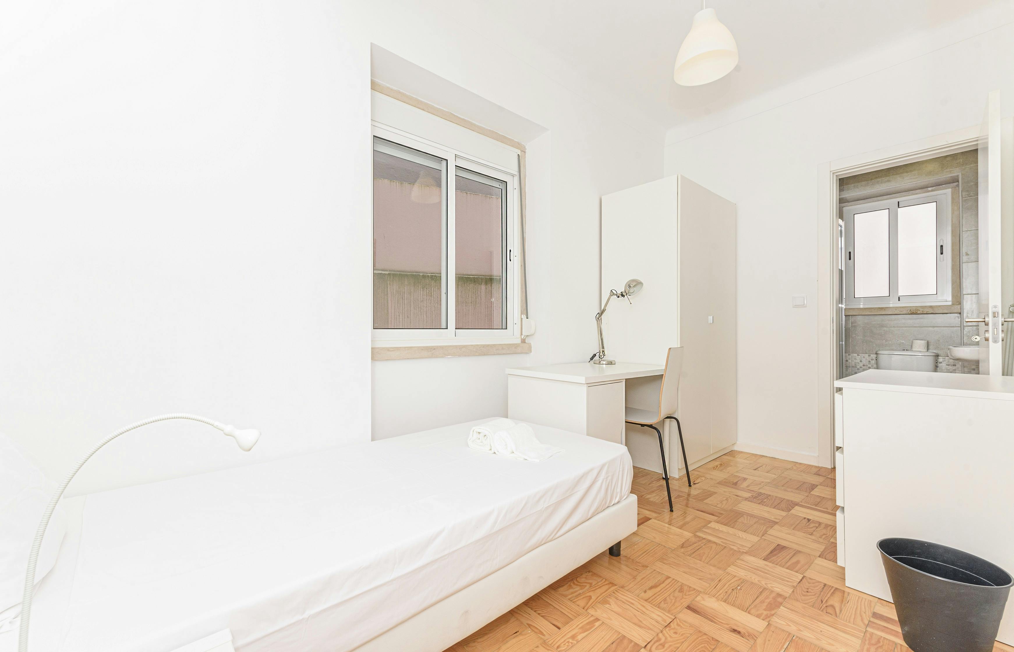 💢💢💢 Immerse yourself in a unique student experience where studying meets coastal living. Book your spot in this special accommodation, on the 1st floor, and enjoy a lifestyle that combines learning with exciting adventures by the sea and the vibrant city of Lisbon. 💢💢💢 Step into a cozy room adorned with a private bathroom, where ultimate comfort awaits. The well-appointed bedroom is tastefully furnished with a bed, closet, and desk, ensuring a cozy and functional space that caters to your needs. Furthermore, you'll have access to shared amenities including a TV, washing machines, and WIFI, providing all the modern conveniences required for a seamless living experience. Drenched in natural light, this modern flat comprises four inviting bedrooms, three of which feature balconies. The fourth bedroom even has its own private bathroom. The apartment also includes a well-appointed kitchen with all necessary appliances, a shared bathroom, and a cozy living room. Perfectly situated for students, this location is in close proximity to Universidade Católica and Lisbon's university district. Just 400 meters away, you'll find the Sete Rios / Jardim Zoológico Metro Station on the Blue Line, ensuring convenient access to the city. 💢💢💢 ✍To book, tenants need to pay the first month's rent through the platform and then the security deposit. At the check-in, the tenant pays the last month's rent as well. 🔸​This apartment is promoted in partnership with Católica Lisbon School of Business & Economics (CLSBE). All CLSBE's students have the following discounts: ✔15€ discount on the first monthly payment ✔3% discount on the total payment if the payment is made upfront 🎯Extra services available upon request: ✅Room Cleaning: ✔Monthly: €20/month ✔Biweekly: €32/month ✔Weekly: €48/month ✅Extra Residence Cleaning: ✔Monthly: €60/month ✔Biweekly: €100/month ✔Weekly: €160/month 🔸Note: ✔The cost needs to be shared by all residents ✔There should bed only one resident responsible for making the payment and collecting the money from the remaining residents. ✅Second bed upgrade: €40/month ✅Minibar in Bedroom: €40/month ✅Fan in Bedroom: €30/month ✅Electric Heater in Bedroom: €60/month ✅Gas Heater in Bedroom: ✔Equipment rental: €25/month ✔Gas cylinder: €35/bottle (cost price) ✅Extra Kitchen Pack: ✔Cooking Pack: €95/Pack ✔Dining Pack: €45/Pack 💢💢�...