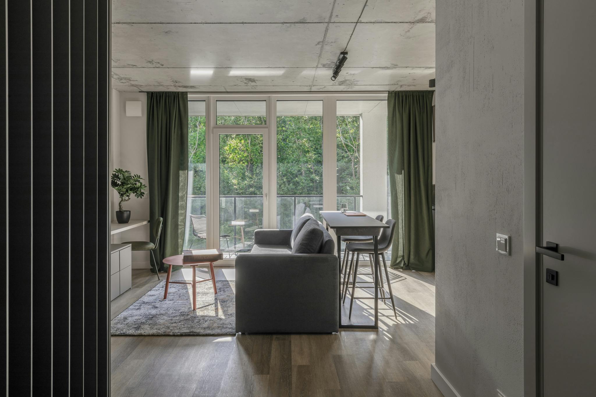 This modern and newly furnished project is in a brand new house which located on J. Ralio Street. These design apartments are located next to the Ozo Shopping Center and Vichy Water Park, 1 km away to the Akropolis Shopping Center, 4 km from the Lithuanian National Opera and Ballet Theater. From here you can also easily reach the Old Town, Gediminas Castle Tower. Strategically very convenient location, quickly accessible by car and bus. These one-bedroom apartments are furnished to the highest standard and have an integrated open-plan kitchen. High ceilings and large windows give the apartments a special charm of exclusivity. All apartments have a large balcony where you can have a coffee and enjoy the city views or the natural greenery. The apartment is located on the fourth floor of the building. The building has an elevator. The staircase is locked for guest safety. These bright and cozy apartments are suitable for 2 people. The room has a double bed and a wardrobe. The kitchen is fully equipped and includes: refrigerator, hob, dishwasher, essential utensils and utensils. The apartment also has a TV and high speed Wi-Fi. To ensure comfort, we provide all our guests with towels, bed linen and toiletries. We provide cleaning services at an additional cost....
