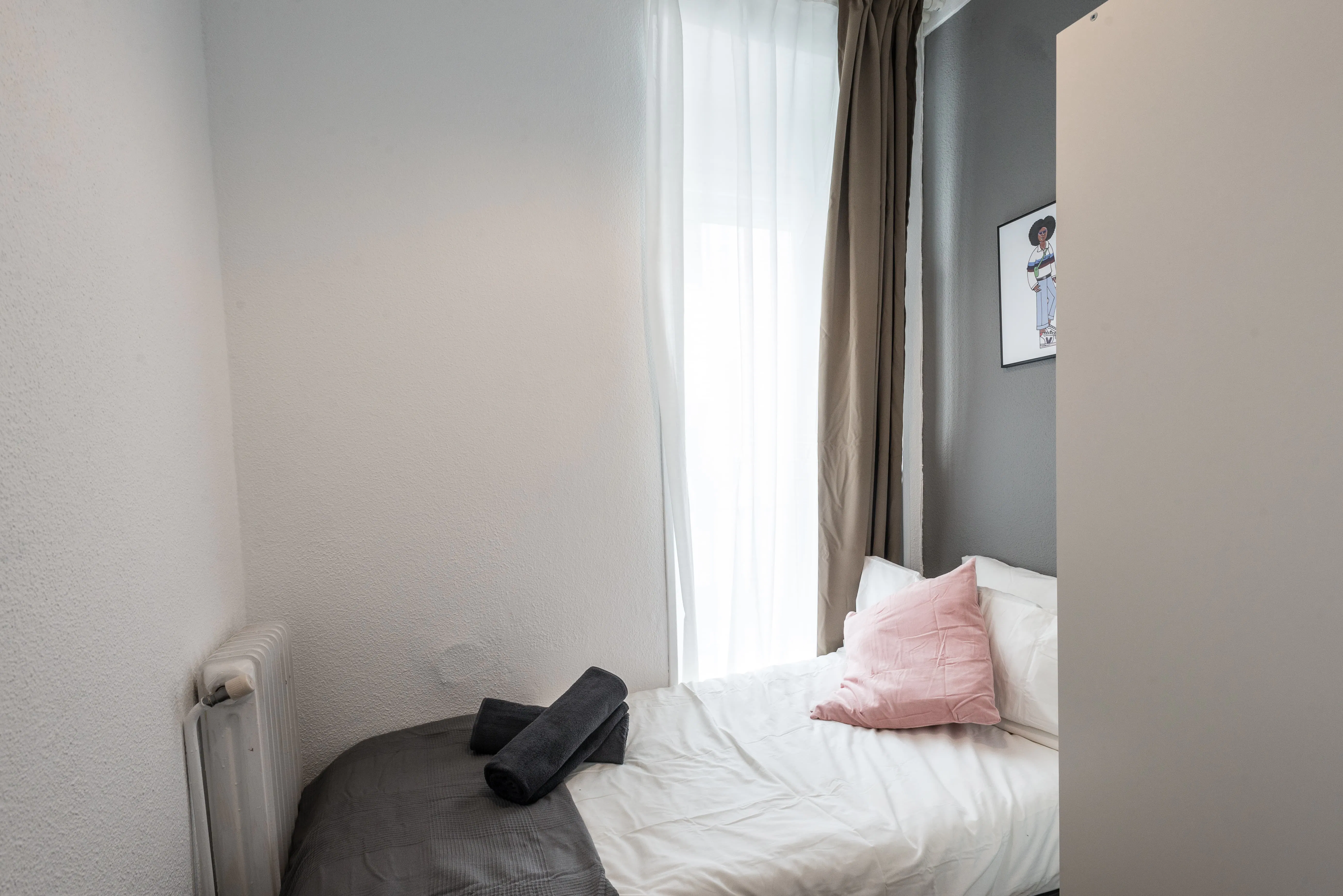 ROOM Cozy room in Madrid Centro in a newly renovated apartment. The room has all that you need to live, work and study here. From appliances to linen and towels, internet and more. APARTMENT The apartment is designed in a modern style with spacious rooms and a great kitchen. All costs are included in the rent, including bills, internet, weekly cleaning and more! PROPERTY The building is located right in the heart of Madrid, only a few minutes walk from Sol and Tirso de Molina....