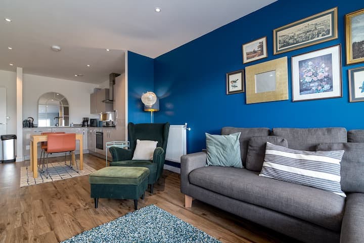 This two-bedroom apartment in Woolwich is an ideal place to stay for families and friends. It is fully furnished with all the amenities necessary for a pleasant stay. Plenty of shops, cafes and restaurants are nearby, and the train station is just a 7-minute walk away. Enjoy a home away from home with all the comforts you need during your stay. The space Welcome to my home! The living room is tastefully furnished and well-kept, with a sitting area, a flat-screen TV and a dining table. It is also generously lit, perfect for sharing moments with your group. Step outside and relax on the furnished balcony, perfect for al fresco dining. The open-plan kitchen includes top-of-the-range appliances, essential cookware, and cutleries to fulfil any culinary requirement. Plus, a washer and dryer are available for your laundry needs. The first bedroom has a king-size bed, and the second has a double bed. Both bedrooms are elegantly decorated, and the beds come with complimentary hotel-quality linens. The two bathrooms have all the amenities you will need to freshen up, including clean towels and toiletries for your convenience. The apartment is always professionally cleaned for your comfort. Enjoy your stay! Guest access Guests will have access to the entire home! Our home is located conveniently in Woolwich. Key pickup is 8 minutes away on foot, and we'll provide detailed instructions for a smooth check-in. Thank you for choosing our home, and we're excited to have you as our guest! Other things to note This property is a self-check-in property, and you will be requested to verify your identity before being able to check into the flat. You can check in any time of the day as long as you respect our standard check-in time (3 PM). Also, we charge £50 for each set of lost keys (security keys may cost more). There may be an additional cost to replace the locks for security purposes. So, please keep your keys safe. There is a zero-tolerance policy for smoking on the property. If our team discovers evidence that this rule has been breached (e.g., smoke smell, ashes, butts, etc.), we fully reserve the right to charge a minimum of £300 for the smoking fee. We do not allow parties, large gatherings, loud noises, or outside guests. Should we receive sufficient evidence of such activity, we reserve the right to cancel your stay (without a refund) and may involve a security team to evict you. Any associated cost will be charged to you via your security deposit. Local authorities may also be present (if required). Greater London, England, United Kingdom Fast-developing Woolwich is home to the Royal Arsenal, a former arms manufacturing complex dating back to the 17th century, whose buildings now house many trendy pubs, eateries, and food shops. A farmers' market in Artillery Square sells produce, flowers, and baked goods. Green spaces include the vast Woolwich Common, while the Woolwich Ferry and a foot tunnel link the area to the north bank of the Thames. Getting around The property is easily accessible by public transport and car. The nearest train station, Woolwich Arsenal, is just a 7-minute walk. London City Airport is a 30-minute drive from the property. Please be aware that HousingAnywhere is an online booking platform. Therefore exchanging contact details and offering viewings is not possible. If you would like to reserve this accommodation, send me a booking request or a message and please mention your age and occupation. I look forward to meeting you...