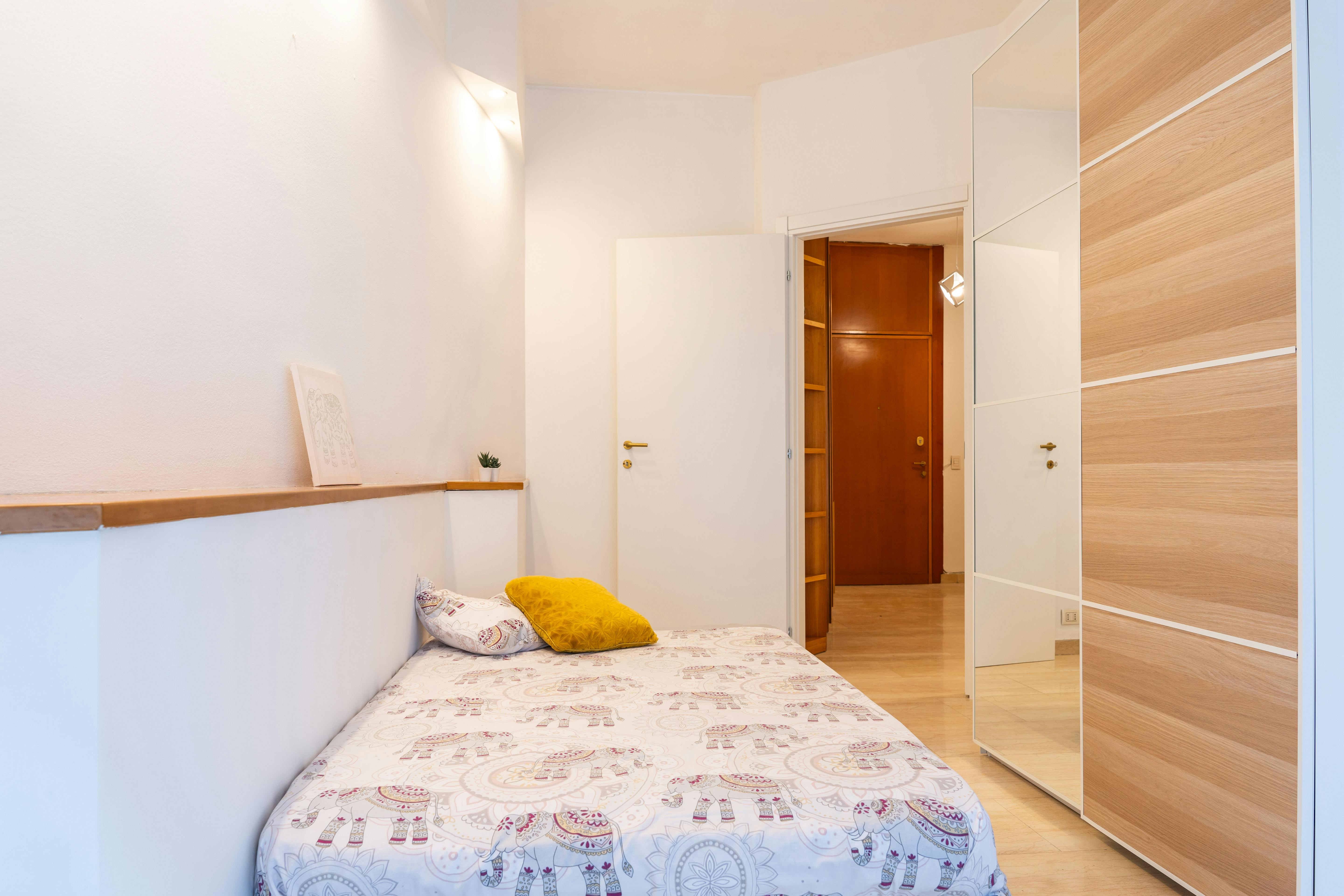 THE FLAT Conveniently located on the first floor in Via Imperatore Tito 8. Plenty of cafes, restaurants, bars, shops and bookstores keep the area always lively. INTERNAL CONDITIONS The flat consists of: - 4 rooms - a bathroom - an eat-in kitchen with a dishwasher - a washing machine-dryer - wifi Shared kitchen equipment provided. The building has an elevator and concierge available all day. DISTANCE - BOCCONI: 38 minutes walking distance - MARANGONI: 27 minutes (Bus 84) - UCSC (Università Cattolica del Sacro Cuore): 38 minutes (Tram 16) - UNICATT: 38 minutes (M1 and M3/ Tram 16) - UNIMI: 25 minutes (Bus 84) or 40 minutes walk - IED (Piranesi): 16 minutes (91) - IED (Via Sciesa) Autobus 84: 20 minutes - IED (Pompeo Leoni) bus 90: 20 minutes ROOM 4 - A brand new cozy room This cozy room is furnished with everything you need: a wardrobe with hangers and drawers, a full-size bed (200x120cm) with a night table and lamp and a desk with a matching chair. Monthly utilities (paid in advance every month) include heating, electricity, water, internet, and weekly cleaning of shared spaces. One shot admin fee € (including VAT, contract registration, third party insurance, room initial and final cleaning, garbage tax, shared kitchenware, cutlery and crockery) Bedding kit available: A set of towels and linen - 48€ (one shot payment ) Duvet - 24€ (one shot payment ) Items must be returned in good condition at the end of your stay. IMPORTANT INFORMATION: Notice of Cancellation is possible only if the contract has a duration of one year. The admin fee is due within 48 hours from the acceptance of your booking and paid directly to the landlord. If the landlord doesn't receive the Admin fee within 48 hours, the booking will not be confirmed and the landlord is free to cancel it. The admin fee is fully refunded in case of cancellation at least 45 calendar days prior to the first day of your contract and refunded at 50% for cancellations at least 30 calendar days prior to the first day of your contract The security deposit must be paid prior to check-in according to the Landlord's instructions and is 100% refundable in the event of cancellation of the booking and/or at the end of the stay upon release of the rented accommodation without damage. Check-In and Check-out Policy: Standard Check in (No fees) Monday to Friday: 3.00pm - 6.00pm Monday to Friday outside office hours - we are available 6.00pm to 9.30 pm - €50 Saturdays - we are available 10.00 am to 6.00 pm - €50 Sundays/holidays - we are available 10.00am to 6.00pm €100 Check out must be done within 12.00 noon. Please be aware that HousingAnywhere is an online booking platform. Therefore exchanging contact details and offering viewings is not possible. If you would like to reserve this accommodation, send me a booking request or a message and please mention your age and occupation. I look forward to meeting you...