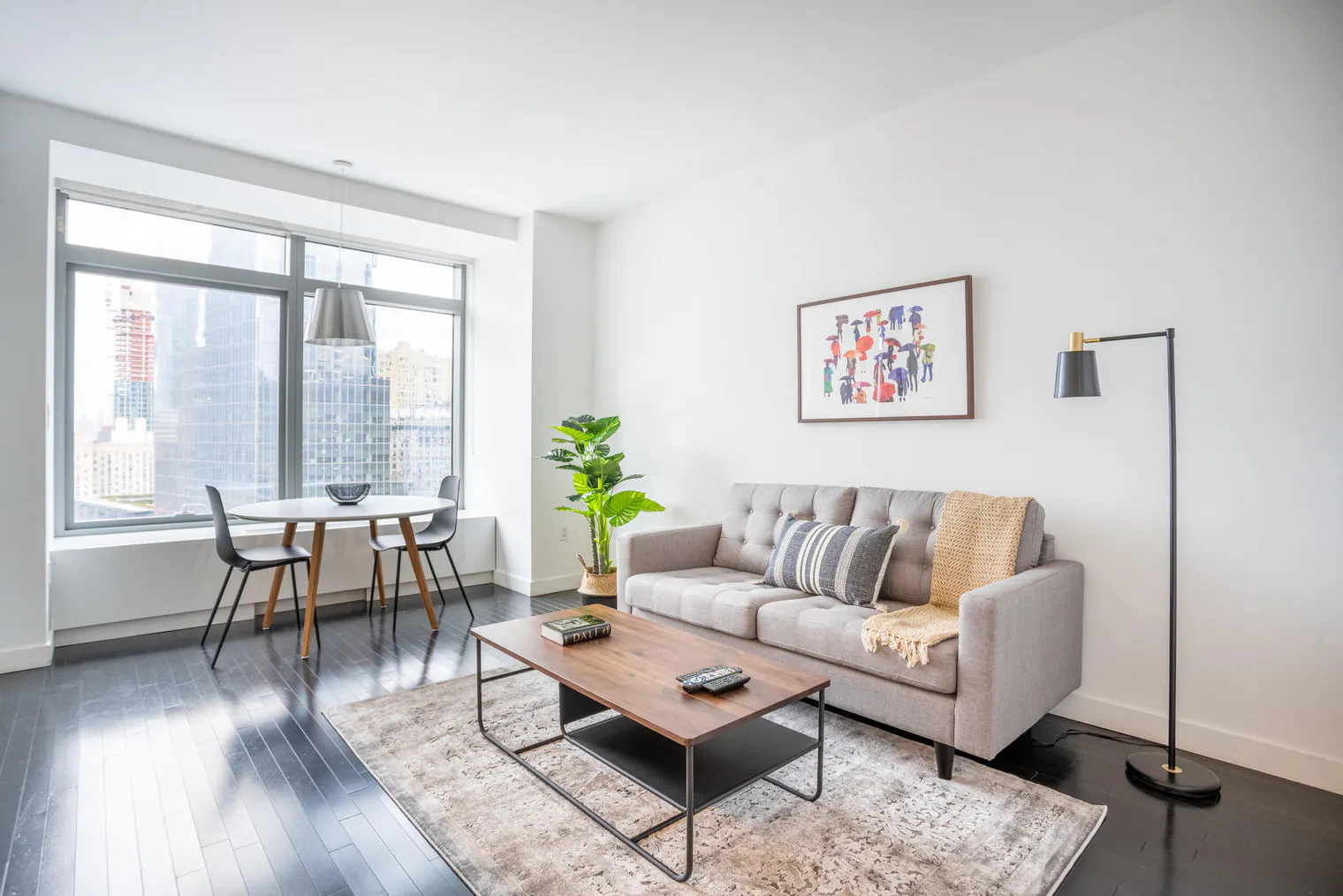 Please, note that the minimum stay for this accommodation is 33 days. You’ll love this comfortable Financial District furnished one bedroom apartment with its modern decor, fully equipped kitchen, and cheery living room with great high floor views. Ideally located, you’re close to all the best that New York has to offer! (ID #NYC1358) Designed with you in mind In this apartment, you’ll find a thoughtfully designed space complete with beautiful furniture and a fully equipped kitchen in this one bedroom property. And, thanks to our superior quality mattresses, luxury linens, and towels, you can relax knowing you’ll always feel comfortably at home. When you’re ready for some fun, you can take in the New York vibes or bring the entertainment to you with the premium wireless speaker or smart TV. This apartment also offers in-apartment laundry. Sleeping arrangements Queen Bed, 63in/160cm Amenities Building amenities unique to this one bedroom apartment include an on-site: - Doorman - Dryer - Elevator - Washing machine - Pets allowed Arrival and ongoing support Full Maintenance and Technical Support / cleaning requests at a click of a button. Ideally Located This furnished apartment is located in the Financial District, also known as FiDi. Home to Wall Street, One World Trade Center, the South Street Seaport, and Bowling Green it is a constant hub of activity. During the week the sidewalk is always bustling and the restaurants are filled with professionals. The glittering skyscrapers and well-known landmarks make this one of the city’s most recognizable and historic neighborhoods. By subway, Times Square is about 20 minutes away. Other things to note Building amenities may have an extra cost. This apartment has flexible lease options, allowing you to book it for one month, a year, or more. Pets are welcome, though weight limits and breed restrictions apply and may incur fees. Completion of the Background check via a link is mandatory after the booking confirmation. All occupants, and anyone booking on an occupant's behalf, will be subject to a background check, which will include a criminal and credit history to the extent permitted by law. United States citizens, U.S. permanent residents, and non U.S. citizens with work visas must provide a social security number to complete the background check. Should guests not meet requirements or decide not to complete these screenings, the reservation must be cancelled by guests. In case of students, proof of University enrollment and a parents screening are mandatory for the confirmation of a booking...