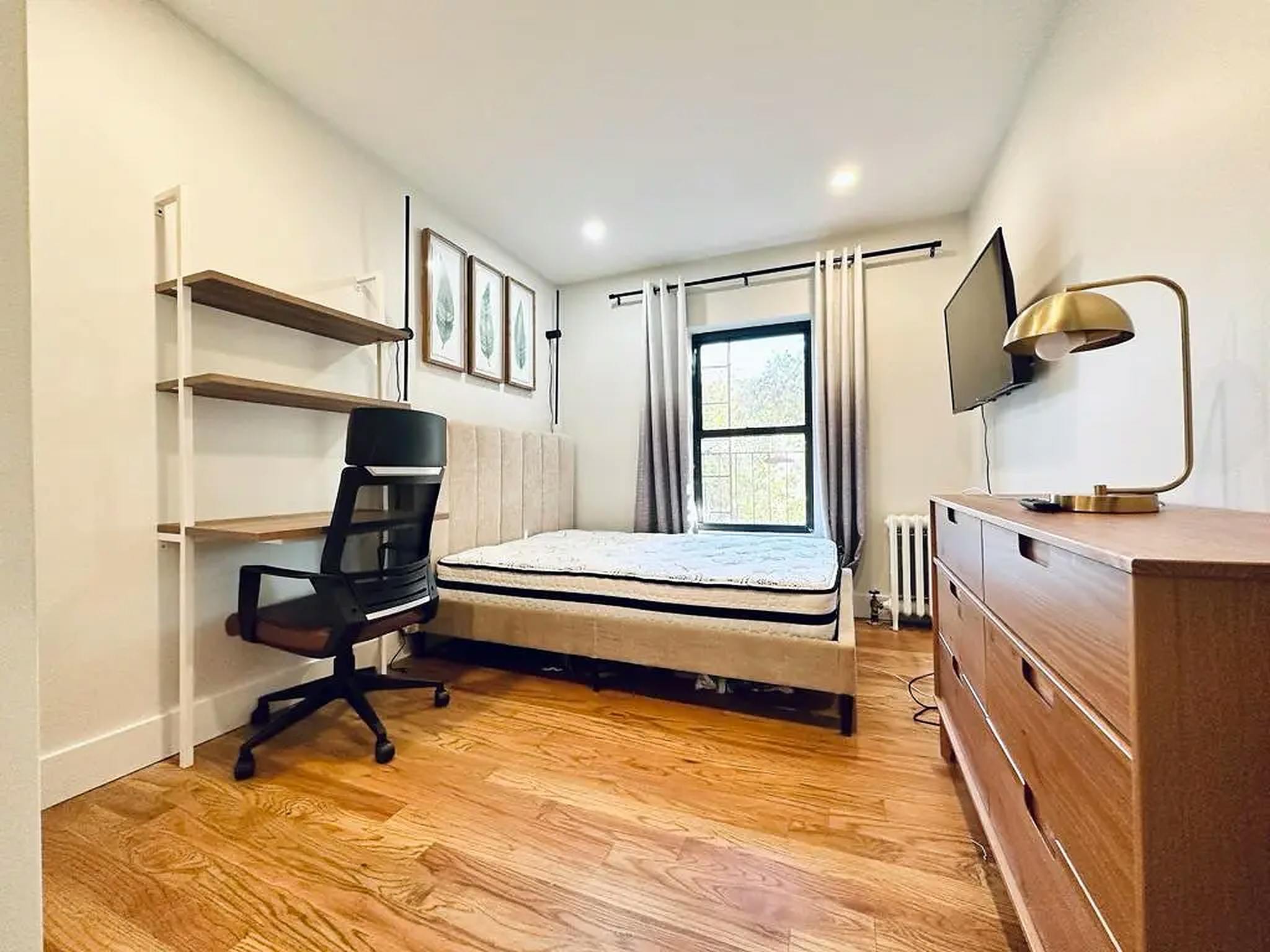 - Bright bedroom in a HUGE DUPLEX APARTMENT located in a popular part of Bedstuy, 10 min walk to Williamsburg, right on Pulaksi St and Tompkins Ave. The apartment is so large that there are two separate living rooms. - Room has a HD TV, dresser, desk, chair, Wifi and a large closet. - 5 min walk to G train, 13 min to J, M, Z trains, 21 min to Manhattan, 27 min walk to Fort Greene Park. - We are looking for someone who is clean, responsible with good energy. - Utilities are $140 per month. - $20 for monthly cleaning - Restaurants, cafes, bars, salons are 3 minute walk, you are in the center of a popping neighborhood. - Room # 41...
