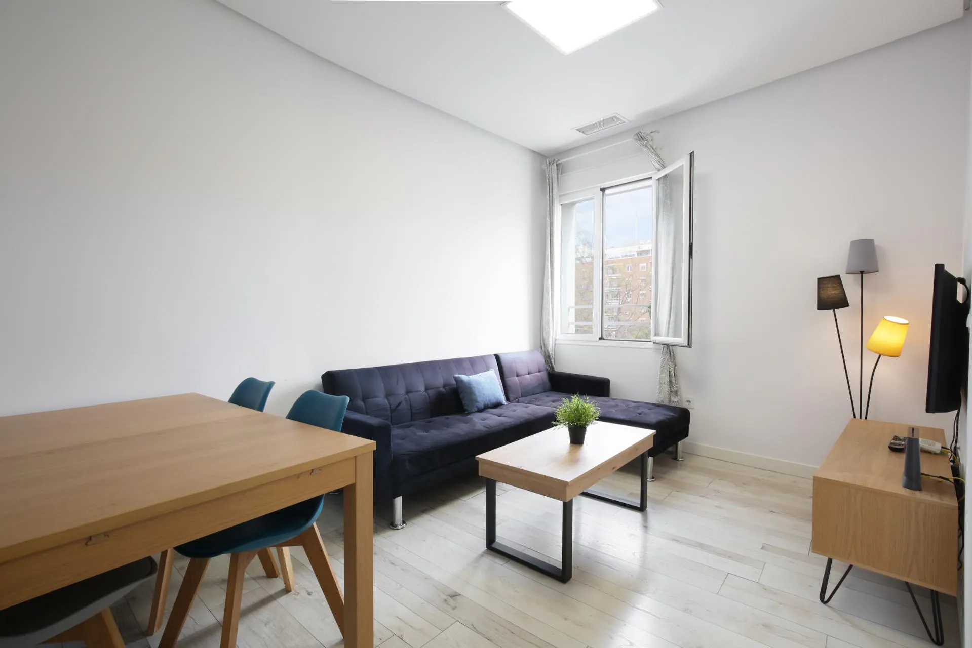 MONTHLY RENTAL PISO REFORMADO A ESTRENAR, EXTERIOR Y AMUEBLADO EN ALQUILER. INTERNET INCLUIDO EN EL PRECIO. El piso se compone en salón comedor con sofá cama, TV Smart TV, mesa comedor y un aire acondicionado. La cocina es office y está totalmente equipada con nevera, vitrocerámica, horno, microondas, lavadora-secadora, tostadora y menaje. La vivienda tiene 2 habitaciones, 1 doble con cama doble, vestidos y baño con plato de ducha, la otra habitación es individual con cama individual y escritorio de trabajo. Se encuentra ubicado en el Distrito de Arganzuela, Barrio Acacias, a 10 minutos del centro de Madrid. Zona residencial y tranquila, rodeada de restaurantes, comercios, supermercados y el conocido Madrid Río. Está perfectamente comunicado por buses 60, 78, 148, N17 Y metro, estaciones Embajadores y Acacias. Si estás interesado en visitarlo o reservarlo, ponte en contacto en (hidden) o (hidden) (hidden...