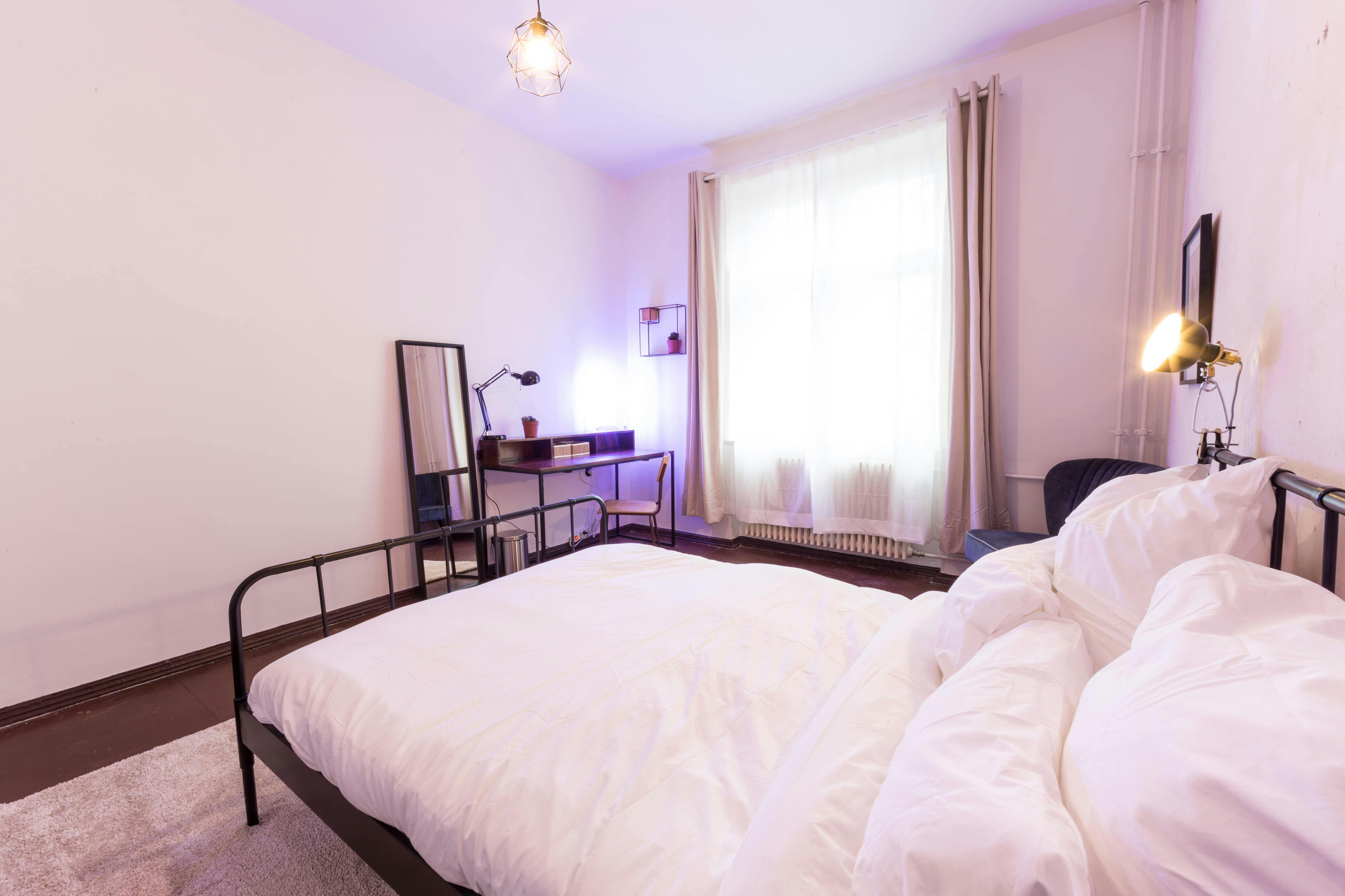 ROOM Cozy room in Friedrichshain in a newly renovated apartment. The room has all that you need to live, work and study here. From appliances to linen and towels, internet and more. APARTMENT The apartment is designed in a modern style with spacious rooms and a great kitchen. All costs are included in the rent, including bills, internet, bi-weekly cleaning and more! PROPERTY Only 3 minutes walk from the S-/U-Bahn station Weberwiese and Frankfurter Tor (U5), and around 8 minutes walk to the S-Bahn station Warschauer Straße (S3, S5, S7, S9, U3, U1) making it easy to get to any other vibrant area in Berlin within a short amount of time....