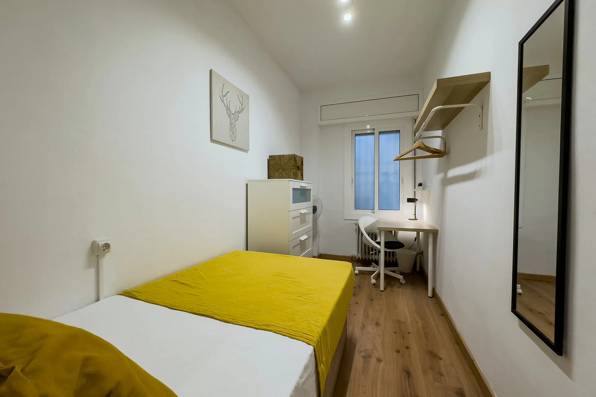 HABITACIÓN INDIVIDUAL La habitación cuenta con cama individual, zona de escritorio y armario. El apartamento cuenta con cocina completamente equipada. El baño y el aseo serán compartidos por un máximo de 5 personas. Nuestro coliving está enfocado a estudiantes y jóvenes profesionales, generalmente entre 18 y 40 años, y ambiente internacional. Buscamos que disfrutes de Barcelona y que tu estancia sea cómoda, por lo que nuestros asesores te ayudaran ante cualquier duda. Al hacer tu reserva queremos que disfrutes con nosotros, estés cómodo y cuentes con nuestro equipo y comunidad, por ello no solo te ofrecemos un alquiler, sino que alojándote con nosotros: - Formarás parte de nuestra comunidad, teniendo acceso a eventos y actividades semanales para que descubras Barcelona y te sientas como en casa siendo uno más. - Limpieza semanal de las zonas comunes - Servicio de mantenimiento - Posibilidad de empadronamiento (City registration) para estancias a partir de 6 meses - Servicio Medico 24/7 por Quirón Salud - Atención al cliente 24/7 a través de nuestro departamento de Atención al coliver - Invitación a eventos y actividades especiales Condiciones: - Un mes de Fianza - Membership Club - Suministros incluidos en el precio como electricidad, agua, calefacción y internet de alta velocidad (hasta un máximo de 70€ ) - Consultar estancia mínima - De documentación únicamente solicitamos DNI o pasaporte Nuestro coliving está enfocado a estudiantes y jóvenes profesionales que quieren disfrutar de una estancia en Barcelona. La ubicación es inmejorable en la zona de Sants, Sants-Montjuïc. Bien comunicado, situado entre las paradas de metro de Sants Estacio y Entexa y a un par de minutos de la famosa plaza dels Paisos Catalans. La zona cuenta con todos los servicios necesarios en los alrededores rodeado de restaurantes, cafés y tiendas. Check-in: Lunes: 15:00 - 21:00 Martes - Viernes: 15:00 - 22:00 Sábado: 15:00 - 18:00 Domingo/Festivos: el check-in es posible con previo aviso y coordinación. 📅 CONTRATO QUINCENAL En el mes de entrada o de salida: - Si te quedas 14 días o menos, pagarás la mitad del alquiler de ese mes. - Si te quedas más de 14 días, pagarás el alquiler del mes completo. (El importe a pagar de cada mes aparece calculado en el resumen de pagos) 💵 Payments before the check-in: Once the reservation is confirmed, you will be required to make the additional payments (security deposit, etc.) through our secure payment system before the move-in date...