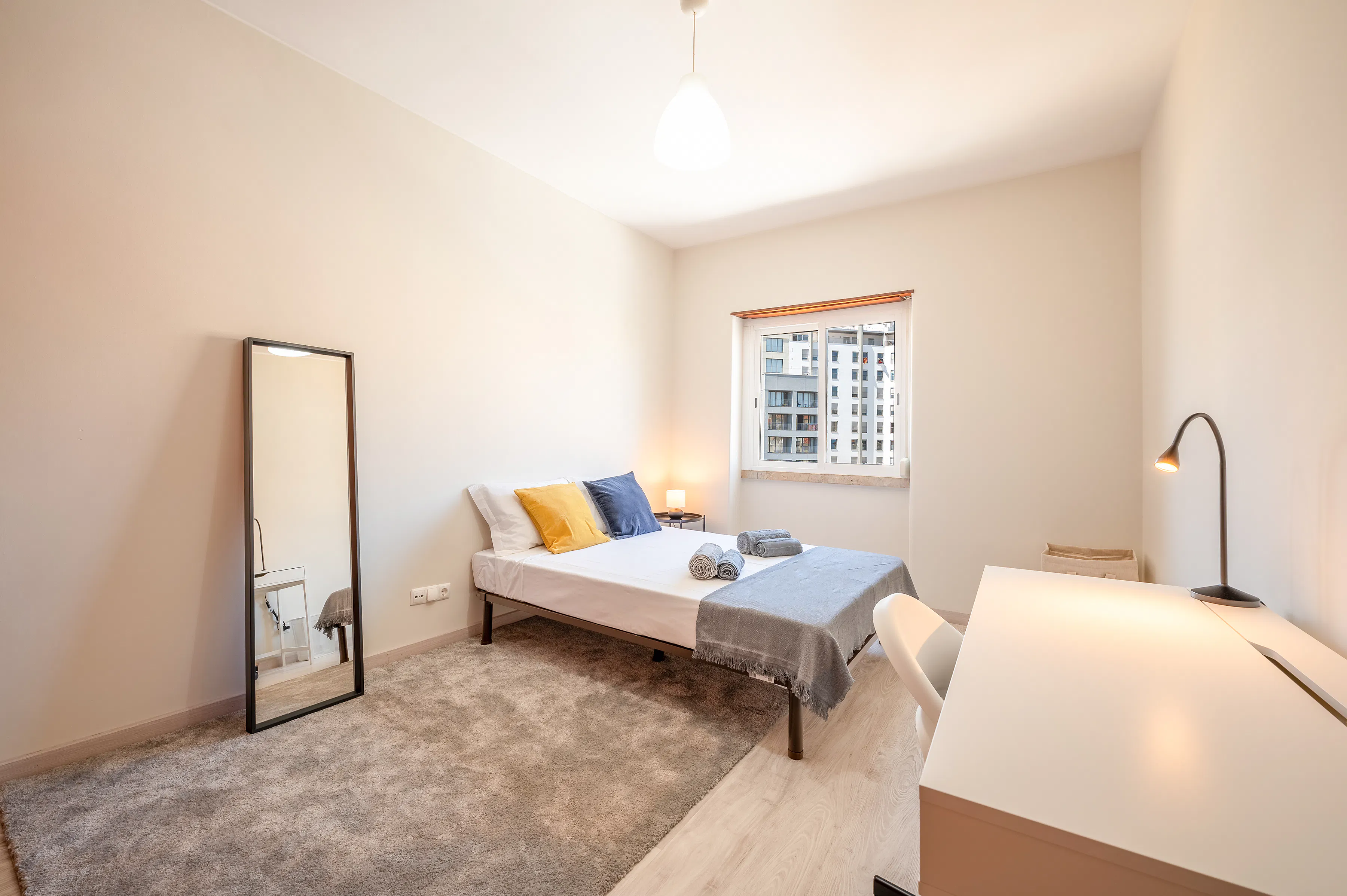 ROOM Our rooms come fully furnished with a premium mattress, a wardrobe, a desk, and a chair. Of course, pillows, bed sheets, and small items such as a bedside table and a small lamp are always included. APARTMENT It’s more than just a co-living apartment, this is simply a very big, comfy place. You will find a place to store your food and a microwave for emergency food heat-ups. 2 shared bathrooms among 5 rooms. A fully-equipped kitchen, with a fridge, washing machine, and other appliances. PROPERTY This co-living apartment is perfect if you love to have your own space and to live in a community full of people. It has 6 rooms, meaning you will have all these people to connect with and share your experiences. A couple of minutes away from the metro station of Saldanha, where you will be able to move around the town easily....