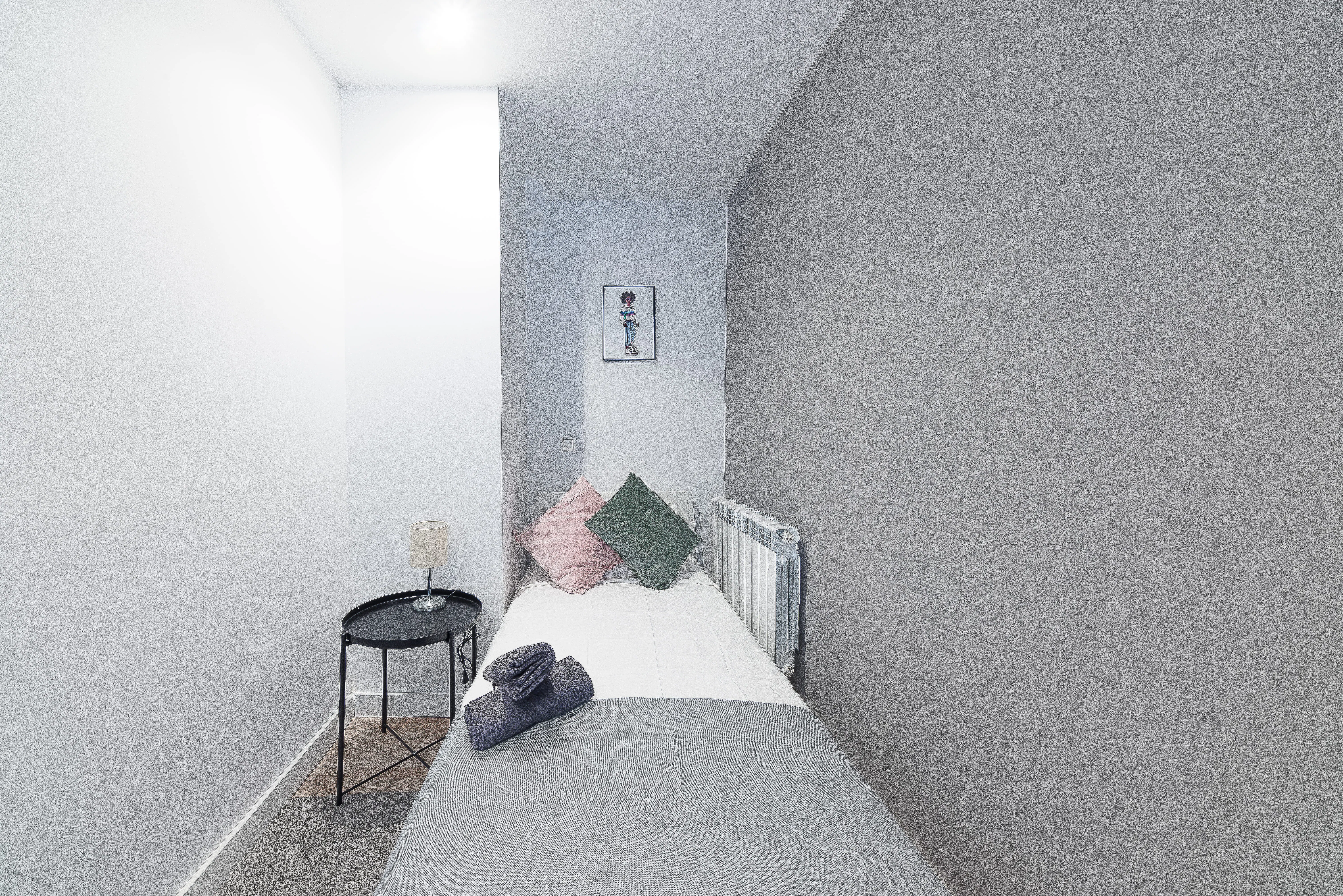 ROOM Cozy room in Madrid Chamberi in a newly renovated apartment. The room has all that you need to live, work and study here. From appliances to linen and towels, internet and more. APARTMENT The apartment is designed in a modern style with spacious rooms and a great kitchen. It is located a 5 min walk from the metro line. All costs are included in the rent, including bills, internet, weekly cleaning, and more! PROPERTY The building is located just a few minutes away from the vibrant Tribunal area....